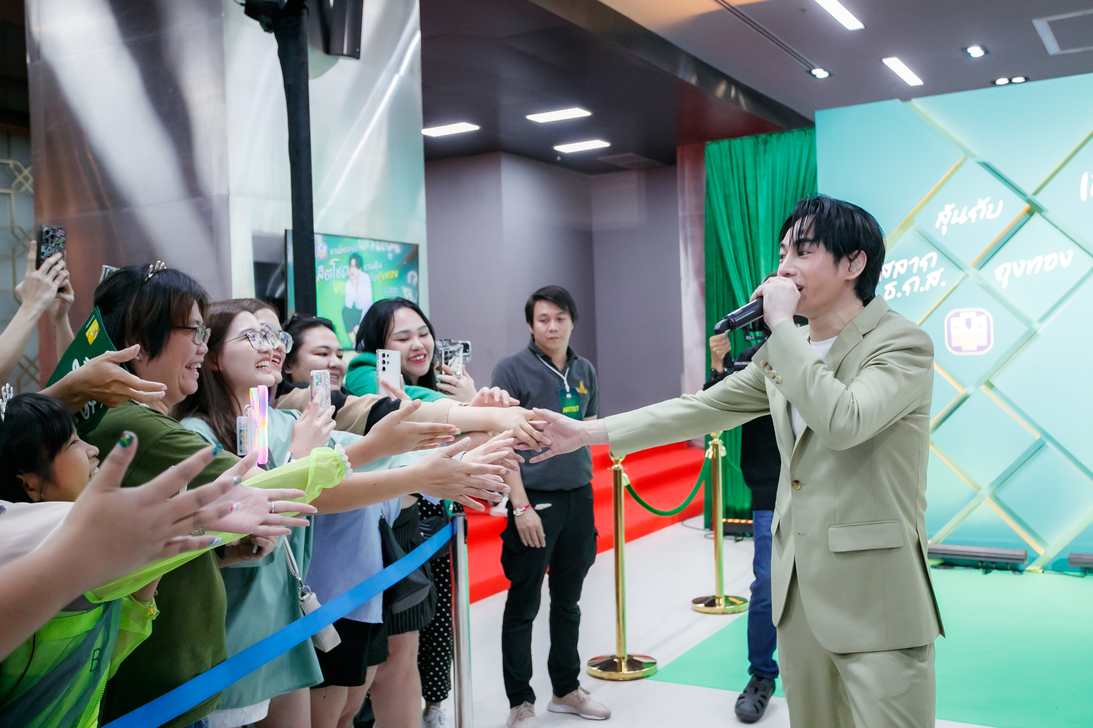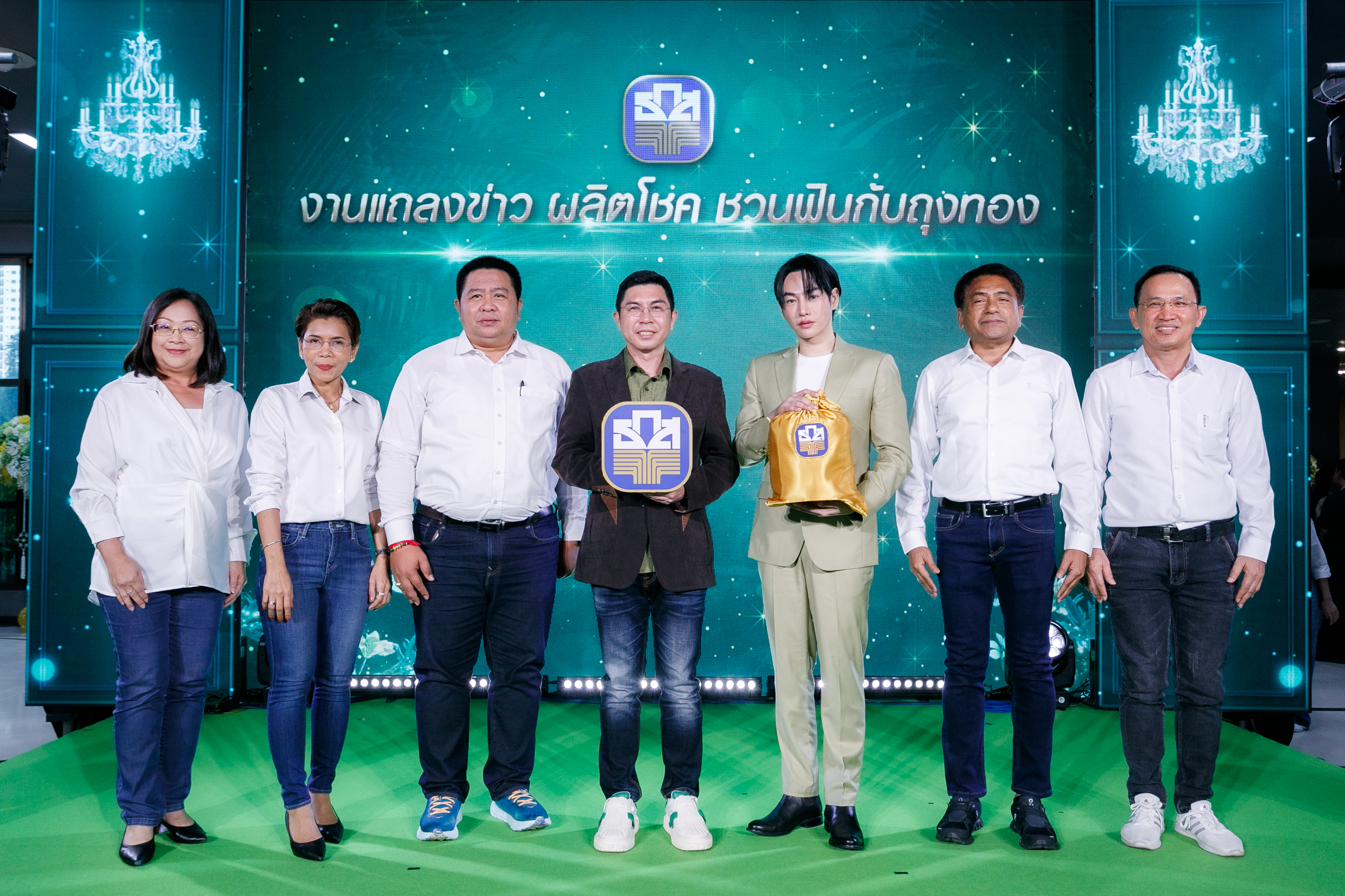 (วันนี้ 17 ธันวาคม 2566) ธนาคารเพื่อการเกษตรและสหกรณ์การเกษตร (ธ.ก.ส.) จัดงานแถลงข่าวกิจกรรมผลิตโชคชวนฟินกับ “สลาก ธ.ก.ส. ชุดถุงทอง” เพื่อเชิญชวนลูกค้าและประชาชนทั่วไปร่วมเปิดโชคใหญ่ เปิดความสนุกสนาน เปิดประตูในการออมเงินที่มีแต่ได้กับได้ ได้โชค ได้ดอกเบี้ย ไม่เสียทุนด้วยการฝากสลาก ธ.ก.ส. ชุดถุงทอง เพียงหน่วยละ 2,000 บาท พร้อมลุ้นรางวัล Grand Prize ถึง 60 ล้าน และรางวัลอื่น ๆ รวมมูลค่าสูงสุดต่องวด 77,650,000 บาท โดยสลากทุก ๆ หน่วย ลุ้นรางวัลได้ถึง 24 ครั้ง อายุรับฝาก 2 ปี ครบกำหนดรับดอกเบี้ย หน่วยละ 35 บาท ฝากได้เลยผ่านแอปพลิเคชัน BAAC Mobile และเคาน์เตอร์ ธ.ก.ส. ทุกสาขาทั่วประเทศ พร้อมเปิดตัวพรีเซนเตอร์ของ ธ.ก.ส. “เป๊ก – ผลิตโชค อายนบุตร” ซูเปอร์สตาร์ชื่อดังของเมืองไทยที่จะมาเป็นตัวแทนในการถ่ายทอดแนวคิดและไลฟ์สไตล์ของคนรุ่นใหม่ที่มีต่อภาคเกษตรกรรมของประเทศไทย และการมีส่วนร่วมในการสนับสนุนเงินทุนแก่เกษตรกร เพื่อนำไปใช้ในการพัฒนาภาคเกษตรผ่านการออมเงินในรูปแบบสลาก พร้อมชวนแฟนๆมาร่วมออมและร่วมสนุกกับกิจกรรม “ผลิตโชคชวนฟินกับถุงทอง” และฟินถึงใจไปกับผู้โชคดี Lucky draw ทั้ง 30 ท่าน ที่ได้สิทธิ์ใกล้ชิดติดขอบเวทีแบบ Exclusive และกิจกรรม Meet & Greet รับความสุขแบบเต็มอิ่มไปกับ “เป๊ก – ผลิตโชค” โดยในวันนี้ธนาคารได้เปิดสาขาบางเขน ตั้งแต่เวลา 8.30 – 16.30 น. เพื่ออำนวยความสะดวกให้กับลูกค้าและผู้เข้าร่วมงานในการฝากสลากและรับบริการด้านการเงินอื่น ๆ อย่างครบวงจร ณ ธนาคารเพื่อการเกษตรและสหกรณ์การเกษตร สำนักงานใหญ่ กรุงเทพมหานคร