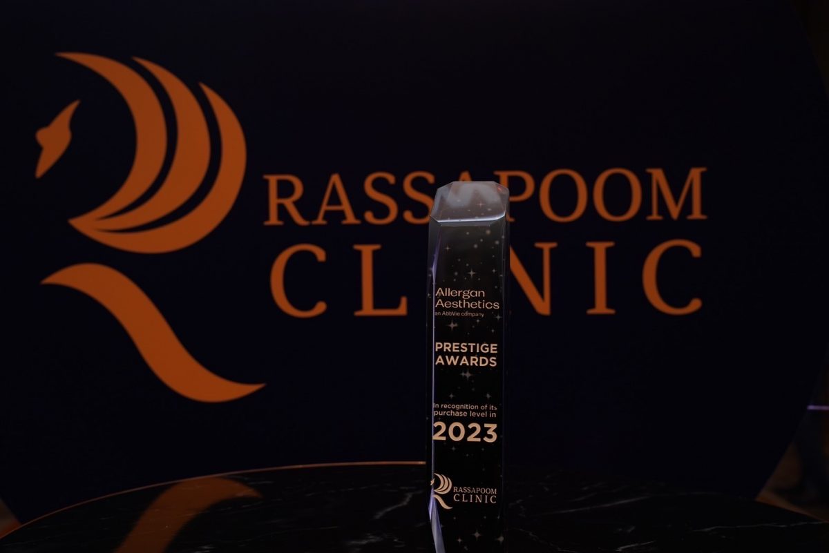 โดยปีนี้ Rassapoom Clinic ได้รับรางวัลถึงสองรางวัลด้วยกัน ได้แก่ รางวัล PRESTIGE AWARDS 2023 หรือ รางวัลคลินิกที่ให้บริการสูงสุดทุกผลิตภัณฑ์ ซึ่งประกอบไปด้วยยอดให้บริการสูงสุดโปรแกรมฉีดฟิลเลอร์ (สารเติมเต็มปรับรูปหน้า), ยอดให้บริการสูงสุดโปรแกรมฉีดสารลดเลือนริ้วรอย , ยอดให้บริการสูงสุดโปรแกรม Coolsculpting Elite หรือโปรแกรมดูแลรูปร่าง สลายไขมันด้วยความเย็น และรางวัล GOLD AWARDS SKIN QUALITY 2023 หรือ รางวัลคลินิกที่ให้บริการมากที่สุดของสารเติมเต็ม ประเภท SKIN QUALITY