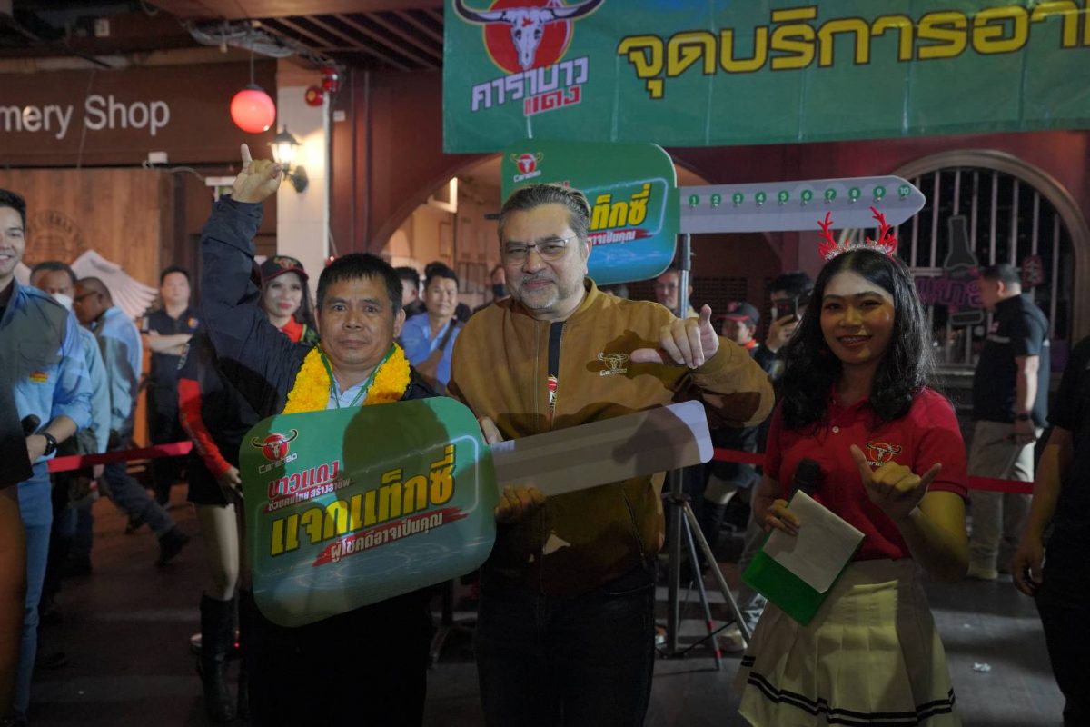 คาราบาว มุ่งจัดกิจกรรมสนับสนุนส่งเสริมอาชีพให้กับคนไทย ซึ่งได้จับมือกับสื่อยักษ์ใหญ่ไทยรัฐทีวี จัดโปรโมชั่น “บาวแดงช่วยคนไทยสร้างอาชีพ ปี2” แจกมอไซค์ทุกวัน แจกล้านทุกเดือน แจกต่อเนื่องให้คนไทยได้ลุ้นโชคทั้งปี 2566 โดยได้แจกทองคำมูลค่า 1 ล้านบาท จำนวน 6 รางวัล รวมมูลค่า 6,000,000 บาท มีผู้โชคดีได้รับรางวัลทองล้านทั่วไทย นำไปต่อยอดสร้างอาชีพ ได้แก่ 1.คุณเอกณรงค์ สาวิกัน จ.ขอนแก่น 2.คุณสมพร เซ็มมุกดา จ.สมุทรปราการ 3.คุณอัฐวุฒิ องอาจ จ.นครราชสีมา 4.คุณอภิวัฒน์ โตพิทักษ์ จ.เชียงราย 5.คุณณัฏวรรณ เด่นดวง จ.ชลบุรี และ 6.คุณพงษ์ศิริ สงเคราะห์ราษฎร์ จ.ราชบุรี และแจกมอเตอร์ไซค์ Honda New Click 125i ตกแต่งสไตล์บาวแดง มูลค่าคันละ 65,000 บาท จำนวน 200 คัน ให้คนไทยนำไปต่อยอดสร้างอาชีพ สร้างรายได้จุนเจือครอบครัว เริ่มตั้งแต่ 1 มีนาคม สิ้นสุดโครงการเมื่อวัน 8 ธันวาคม 2566 กระแสตอบรับจากผู้บริโภคสนใจรายการฯ ร่วมส่งฝาคาราบาวแดง และคันโซคูณสอง มาลุ้นโชคอย่างล้นหลาม อีกทั้งนโยบายตรึงราคาคาราบาวแดงในราคา 10 บาท และยังเพิ่มวิตามิน B12 สูง 4 เท่า ทำให้ส่วนแบ่งการตลาดเติบโตอย่างต่อเนื่อง