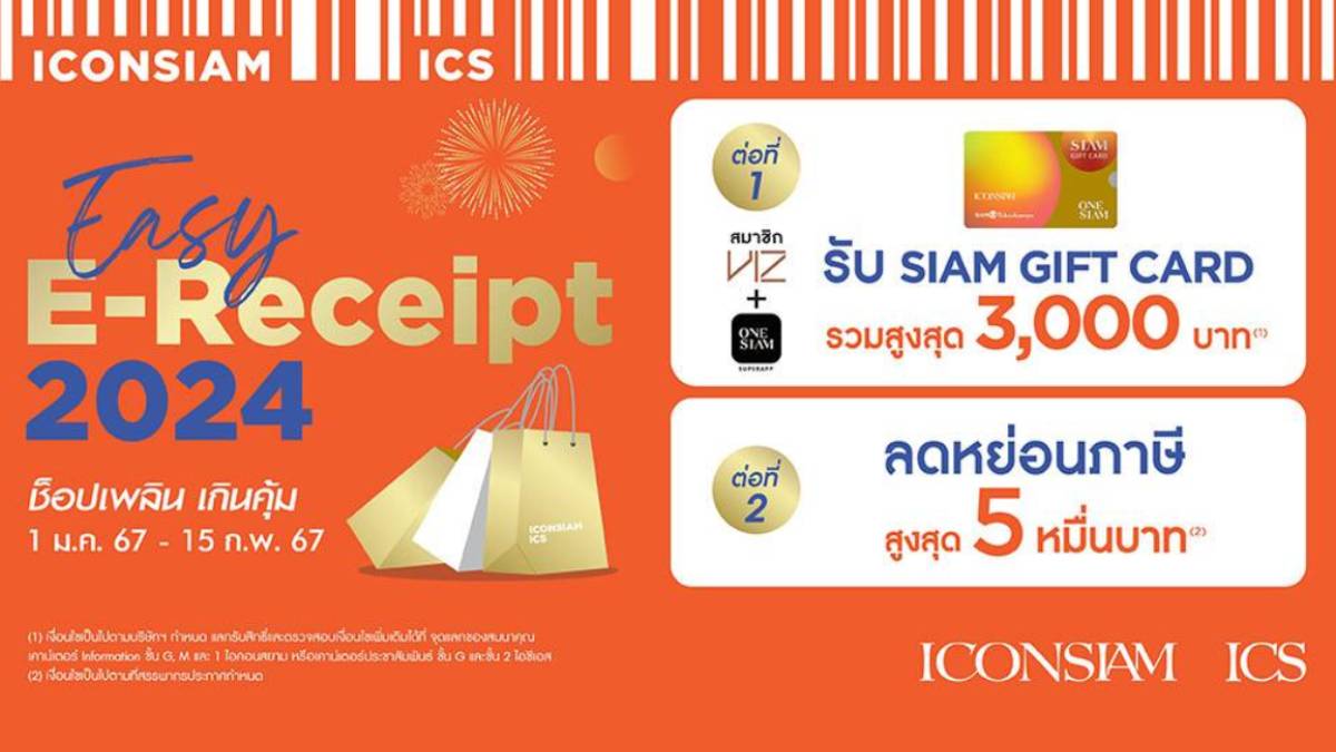 นายสุพจน์ ชัยวัฒน์ศิริกุล กรรมการผู้จัดการ บริษัท ไอคอนสยาม จำกัด กล่าวว่า “ตามมาตรการของขวัญปีใหม่ 2567 ซึ่งคณะรัฐมนตรี (ครม.) ออกใช้มาตรการ Easy E-Receipt 2024 เพื่อเป็นการสนับสนุนผู้บริโภคภายในประเทศสำหรับช่วงต้นปี 2567 ตามที่กระทรวงการคลังเสนอ ซึ่งกำหนดค่าใช้จ่ายจากการซื้อสินค้าและบริการนำมาลดหย่อนภาษีได้ ระหว่างวันที่ 1 มกราคม – 15 กุมภาพันธ์ 2567 โดยกำหนดให้ผู้มีเงินได้ซึ่งมีหน้าที่เสียภาษีเงินได้บุคคลธรรมดา แต่ไม่รวมถึงห้างหุ้นส่วนสามัญหรือคณะบุคคลที่มิใช่นิติบุคคล สามารถหักลดหย่อนค่าซื้อสินค้าหรือค่าบริการตามจำนวนที่จ่ายจริงแต่ไม่เกิน 50,000 บาท (เฉพาะที่ได้รับ e-Tax Invoice หรือ e-Receipt เท่านั้น) เป็นแนวทางของภาครัฐเพื่อกระตุ้นเศรษฐกิจอย่างต่อเนื่อง คาดว่าจะได้รับการสนับสนุนจากประชาชน และภาคเอกชนต่างๆ เช่นเดียวกับปีที่ผ่านมา ที่สามารถช่วยดึงดูดกระตุ้นให้ผู้บริโภคกล้าที่จะจับจ่ายมากขึ้นจริงเพราะสามารถนำไปใช้ลดหย่อนภาษีได้ ส่งผลให้เกิดการหมุนเวียนเม็ดเงินที่เกิดขึ้นจริงในระบบ เป็นอีกมาตรการหนึ่งที่จะช่วยฟื้นฟูเศรษฐกิจให้ก้าวพ้นจากผลกระทบที่เกิดจากสถานการณ์โควิด -19 ได้”