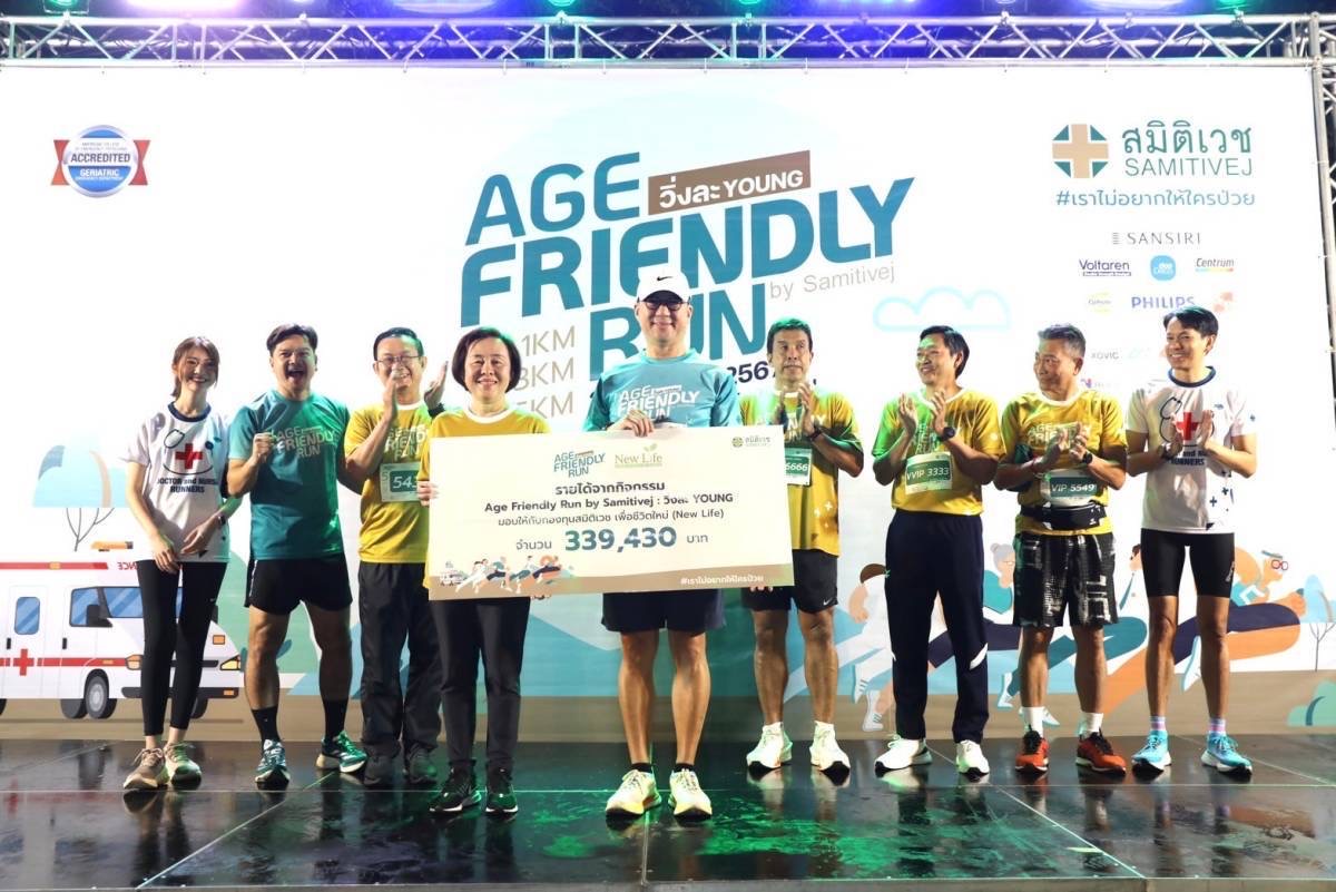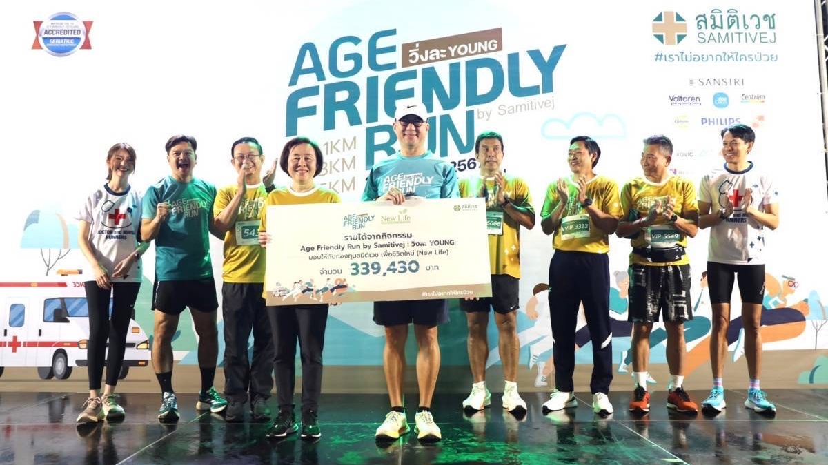 สำหรับกิจกรรม “Age Friendly Run by Samitivej 2024 : วิ่งละ YOUNG” แบ่งการวิ่งเป็น 3 ระยะทางคือ 1 กิโลเมตร 3 กิโลเมตรและ 5 กิโลเมตร มีผู้สนใจเข้าร่วมกิจกรรมทุกกลุ่มอายุเป็นกิจกรรมครอบครัว ที่ชักชวนคนในครอบครัวทุกวัยมาร่วมกิจกรรม และนับว่าเป็นงานวิ่งแรกที่วัยเก๋า 50+ วิ่งได้ปลอดภัยด้วยมาตรฐานการดูแลผู้ร่วมกิจกรรมที่เข้มงวด พร้อมได้ร่วมสนุกกับ 5 ฐานกิจกรรมที่รอให้ทุกคนมาพิชิตภารกิจกัน โดยจำนวนของจุดร่วมกิจกรรมจะขึ้นอยู่ระยะทางที่ร่วมวิ่ง ทั้งนี้นักวิ่งทุกคนยังได้ทดสอบความพร้อมของร่างกายก่อนการวิ่ง ด้วย Well Application หากมีความเสี่ยงสามารถปรึกษาแพทย์ โดยไม่มีค่าใช้จ่าย รายได้จากการจำหน่ายบัตรทั้งหมด มอบให้ “กองทุนสมิติเวช เพื่อชีวิตใหม่ (New Life)” ซึ่งเป็นกองทุนที่จัดตั้งขึ้นเพื่อช่วยเหลือเด็กที่ขาดโอกาสในการรักษาโรคหัวใจพิการแต่กำเนิด รวมทั้งผู้ป่วยเด็กโรคมะเร็งเม็ดเลือดขาว (ธาลัสซีเมีย) และผู้ป่วยเด็กที่เป็นโรคกระดูกสันหลังคดอีกด้วย