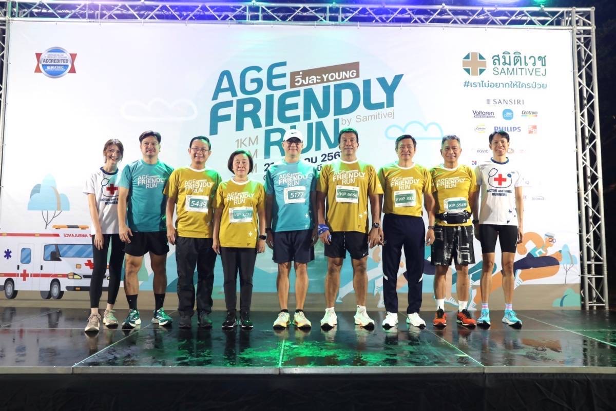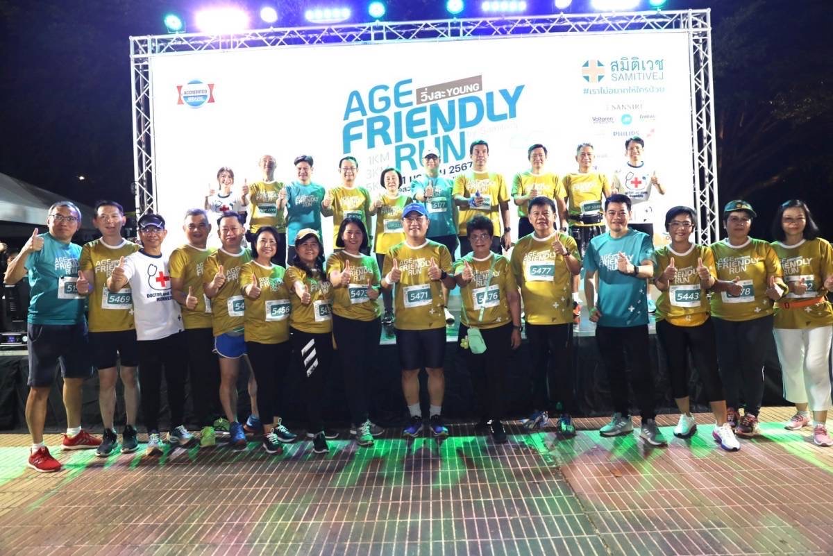 โรงพยาบาลสมิติเวช ได้จัดกิจกรรม “Age Friendly Run by Samitivej 2024 : วิ่งละ YOUNG” ขึ้น ภายใต้แนวคิด #เราไม่อยากให้ใครป่วย เป็นการวิ่งเพื่อสุขภาพที่ใส่ใจในความปลอดภัยและสร้างมาตรฐานของการดูแลผู้ร่วมกิจกรรมด้วยทีมบุคลากรทางการแพทย์ที่มีความชำนาญในการดูแลผู้ร่วมกิจกรรมทุกวัยตลอดเส้นทาง ปลอดภัยด้วยบริการเครื่องกระตุกหัวใจ AED 5 เครื่อง และ รถพยาบาล 4 คัน เป้าหมายเพื่อเป็นโอกาสการออกกำลังกายด้วยการวิ่งสำหรับทุกคนในครอบครัวรวมถึงผู้สูงอายุที่ต้องการออกกำลังในระยะวิ่งไม่ไกลมากนัก เพิ่มความสนุกให้กับเข้าบรรดานักวิ่งตลอดเส้นทางด้วยกิจกรรมที่หลากหลายเพื่อให้ได้ร่วมสนุกเป็นระยะๆ และได้หยุดพัก นอกจากนี้ภายในงานยังมีอาหารเพื่อสุขภาพ บูธกิจกรรมจากพันธมิตร เข้าร่วมเปิดพื้นที่ให้คำแนะนำและความรู้เพื่อการดูแลสุขภาพที่ดียิ่งขึ้น