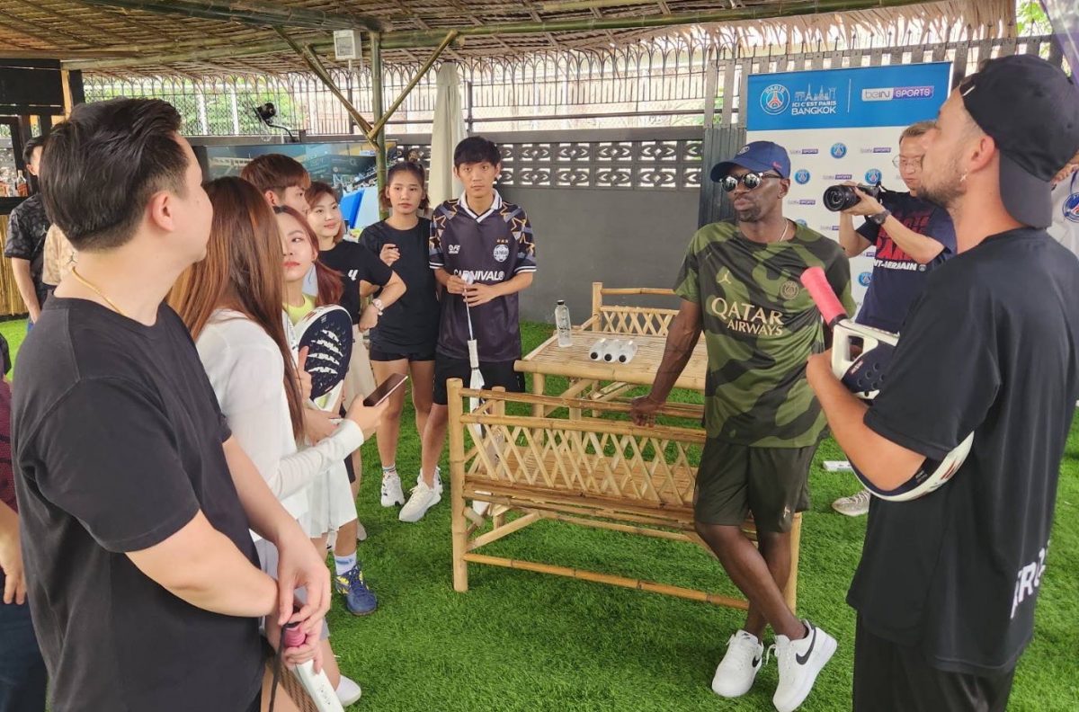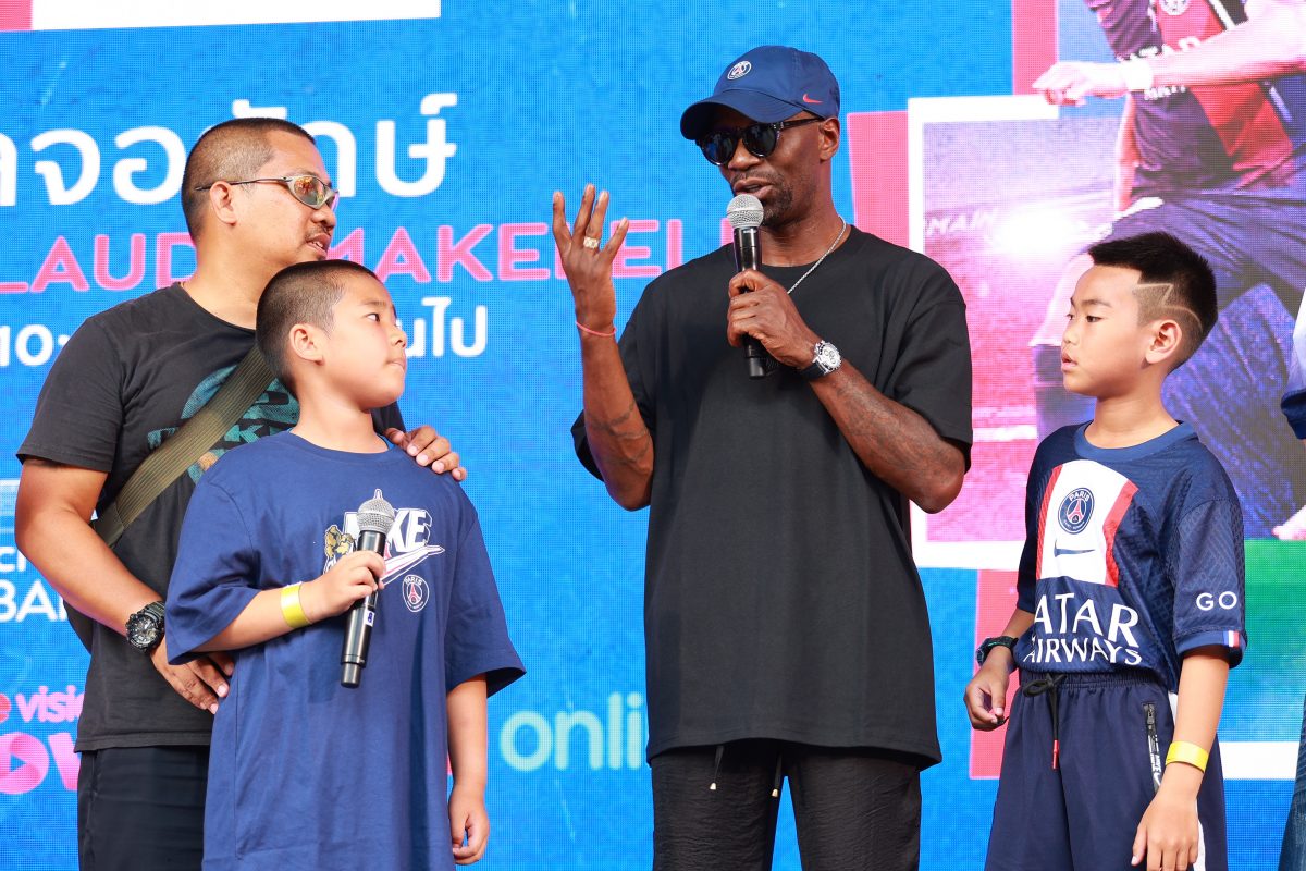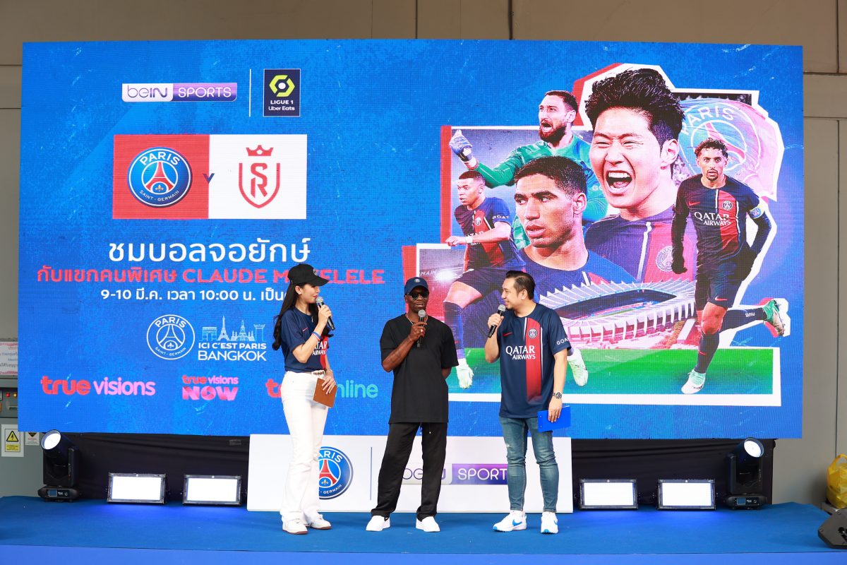 สำหรับบรรยากาศภายในงาน PSG Sawasdee BKK ณ สยามสแควร์วัน แฟนๆ ของ ปารีส แซ็งต์-แฌร์แม็ง แชมป์ ลีก เอิง ฤดูกาลที่ผ่านมา ต่างไม่พลาดเดินทางร่วมงานกันอย่างคึกคัก โดยไฮไลท์ โคล้ด มาเกเลเล่ อดีตผู้เล่นเปแอ็สเฌ และแข้งระดับตำนานของทีมชาติฝรั่งเศส ได้มาปรากฏตัว พร้อมพูดคุยอย่างใกล้ชิด โดยเผยว่า “รู้สึกตื่นเต้นและดีใจที่ได้มาเจอแฟนฟุตบอลที่ประเทศไทย ถือว่าเป็นการมาเยือนเป็นครั้งที่ 2 ผมประทับใจการต้อนรับของคนไทย ที่มีความเป็นกันเอง น่ารักและอบอุ่น“