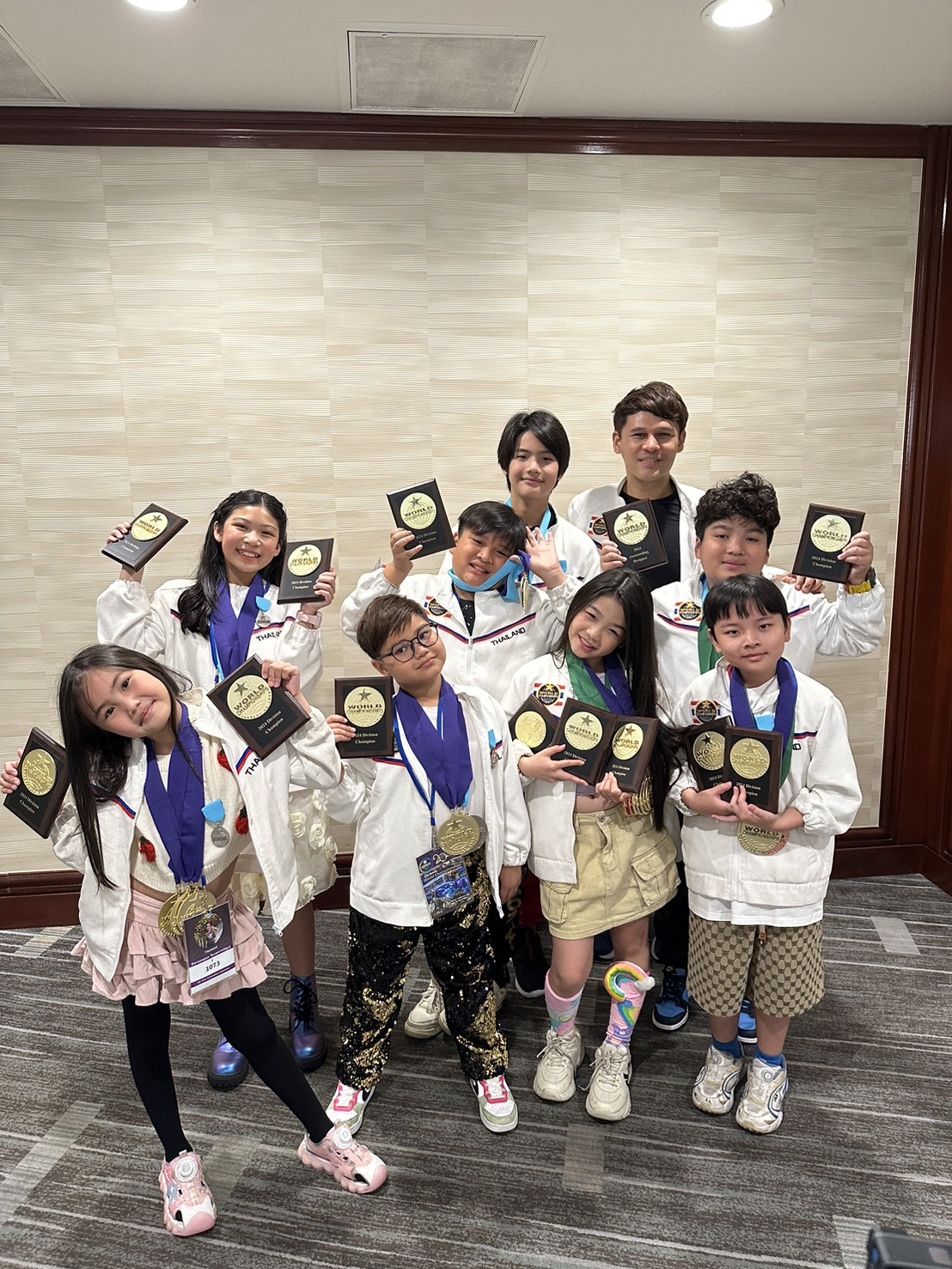โดยแบ่งเป็น เหรียญทอง 43 เหรียญ เหรียญเงิน 37 เหรียญ เหรียญทองแดง 31 เหรียญ ซึ่งทีมไทยแลนด์ในปีนี้มี 18 คน (ประเภทเดี่ยว 18 คน และประเภทกลุ่ม 1 กลุ่ม) นอกจากนั้น ทีมไทยแลนด์ยังได้ โล่รางวัลคะแนนสูงสุด 17 โล่, เหรียญ Finalist 5 เหรียญ, มี 21 การแสดงที่ผ่านเข้าไปรอบ Semi-Final กลุ่ม “ATMA” ซึ่งเป็นผู้เข้าแข่งขันแบบกลุ่มยังเป็น Grand Champion Junior Vocal Group of The World โดยมีสมาชิกดังต่อไปนี้ เวนิส ธนิฏฐาภ์ เนตรพุกกณ และ ออสติน ณัฏฐธนน สุพานิชวรภาชน์ นอกยังมีรางวัลพิเศษที่ได้รับอีก คือ รางวัลชนะเลิศ Outstanding Designer Award: คุณวรินทร์ทิพย์ ชนาภัทรวรโชติ และ คุณนิพพิชฌน์ นิมิตบรรณสาร