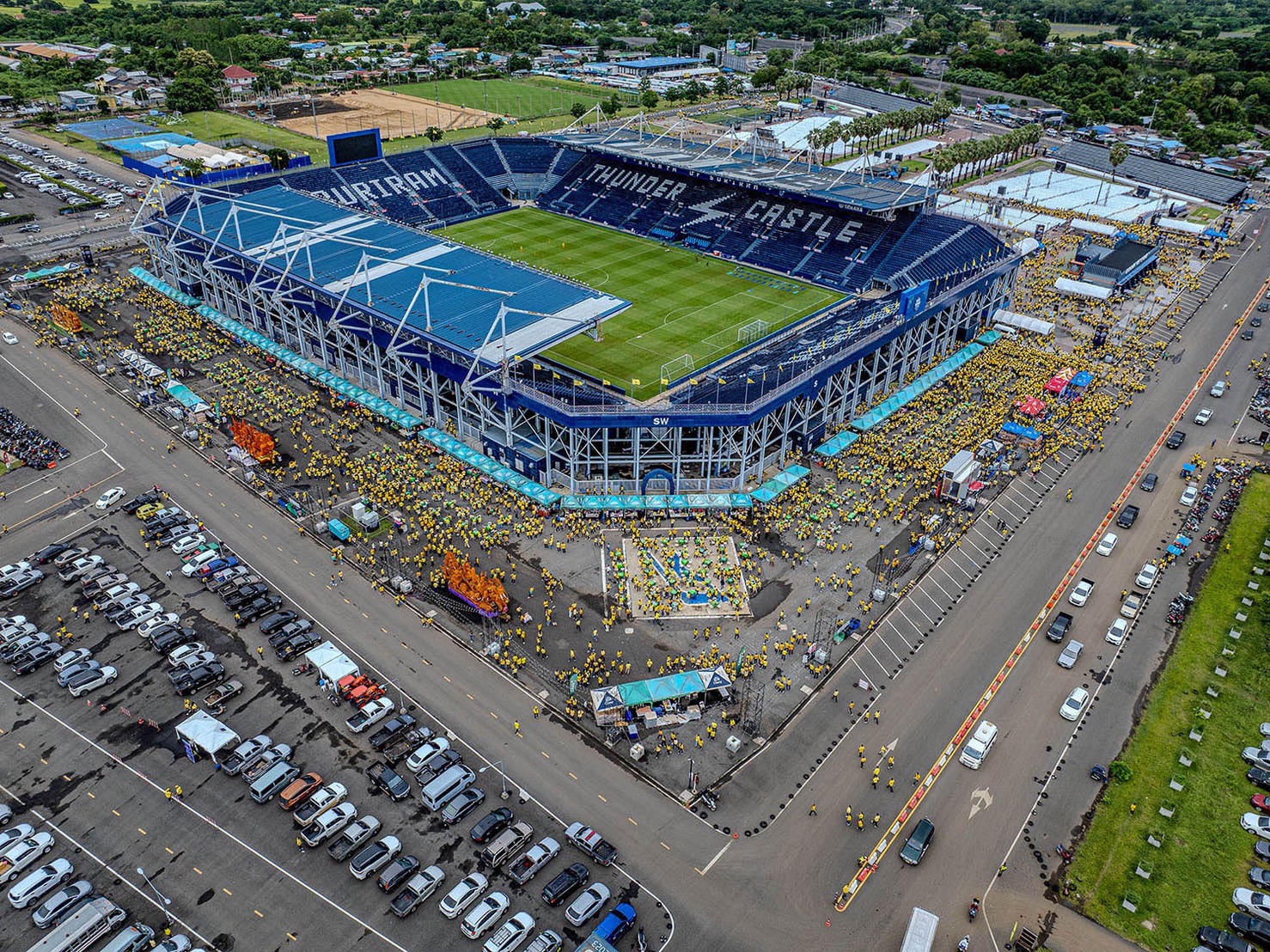 งาน “ลมหายใจของแผ่นดิน” ระหว่างวันที่ 28-30 กรกฎาคม 2567 ที่สนามฟุตบอล ช้าง อารีนา จังหวัดบุรีรัมย์ หลังจากเปิดกิจกรรมวันแรกสร้างกระแสฮือฮาอย่างมากทั้งความสวยงาม ยิ่งใหญ่ อลังการ เรียกว่าเต็มสิบไม่หัก โดยงานในวันที่ 29 กรกฎาคมที่ผ่านมา ซึ่งเป็นวันที่สองของการจัดงาน แม้ว่าจะเจอพายุฝนกระหน่ำตั้งแต่ช่วงเย็น แต่ก็ไม่สามารถทำให้ความตั้งใจของ “ฅนบุรีรัมย์” ที่ต้องการแสดงความจงรักภักดีต่อพระบาทสมเด็จพระเจ้าอยู่หัว ลดน้อยลงไป ยังคงพร้อมใจกันใส่เสื้อเหลือง เพื่อมาชมการแสดงมิวสิคัล “ลมหายใจของแผ่นดิน” ของลูกหลานชาวบุรีรัมย์กันอย่างเนืองแน่น โดย นายเนวิน ชิดชอบ ประธานบริหารสโมสรฟุตบอลบุรีรัมย์ ยูไนเต็ดได้เปิดช้าง อารีนา ให้ประชาชนได้เข้าไปนั่งหลบฝน พร้อมกับชมการแสดงที่มีการบันทึกไว้ ก่อนจะปิดท้ายด้วยการให้นักแสดงมิวสิคัล ลงมาในสนาม เพื่อร่วมร้องเพลง “ในหลวงทรงพระเจริญ” เพื่อแสดงความจงรักภักดี