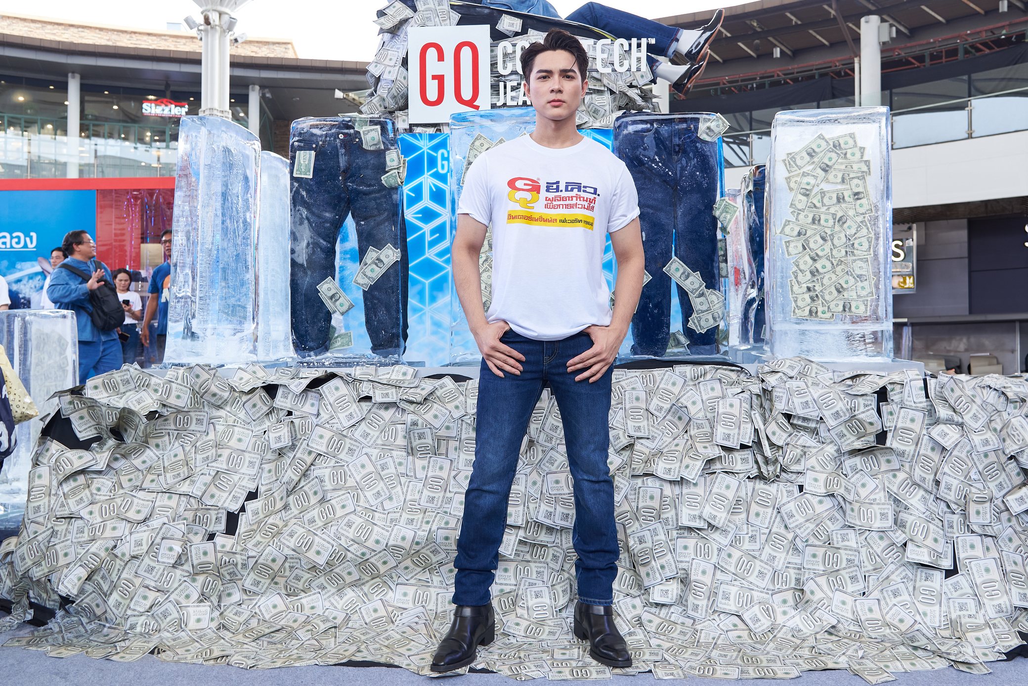พระเอกมาดติสท์ สายฮาแห่งยุค แน็ก ชาลี ไตรรัตน์ ที่มาพร้อมความหล่อ เท่ อย่างมีสไตล์ และคาแรกเตอร์ชัดเจนที่คนไทยต่างคุ้นตา เรื่องเล่นใหญ่จัดเต็ม เรียกได้ว่าไม่เคยทำให้ผิดหวัง ล่าสุดสลัดผ้าท้าความเย็น ทิ้งกางเกงยีนส์ยกตู้ มาประเดิมสวมกางเกงยีนส์เย็นนวัตกรรมใหม่ เปิดตัว GQ COOL TECH™JEANS ไอเทมแห่งปี ใจกลางเมกา บางนา (Mega Bangna) พร้อมทุบน้ำแข็งชวนแฟน ๆ ท้าดวลประชันความหนาวกับแคมเปญ “ลองยีนส์เย็น ลุ้นเงินล้าน” ในกิจกรรม #GQChallengeลองแล้วจะหนาว ผ่าน Tiktok แพลตฟอร์ม ชิงรางวัลรวมมูลค่า 2.2 ล้านบาท นอกจากนี้ ภายในงานยังเชิญแฟน ๆ มาร่วมกิจกรรมสุดเอ็กซ์คลูซีฟ ท้าพิสูจน์ความเย็นตัดยีนส์ GQ COOL TECH™ JEANS เจาะลึกนวัตกรรมความเย็นในกางเกงยีนส์สุดล้ำ และร่วมสัมผัสบรรยากาศสนุกสนานกับมินิคอนเสิร์ตจากหนุ่ม แน็ก ชาลี ไตรรัตน์ ภายในงาน ณ บริเวณโซนน้ำพุ เมกา บางนา (Maga Bangna)