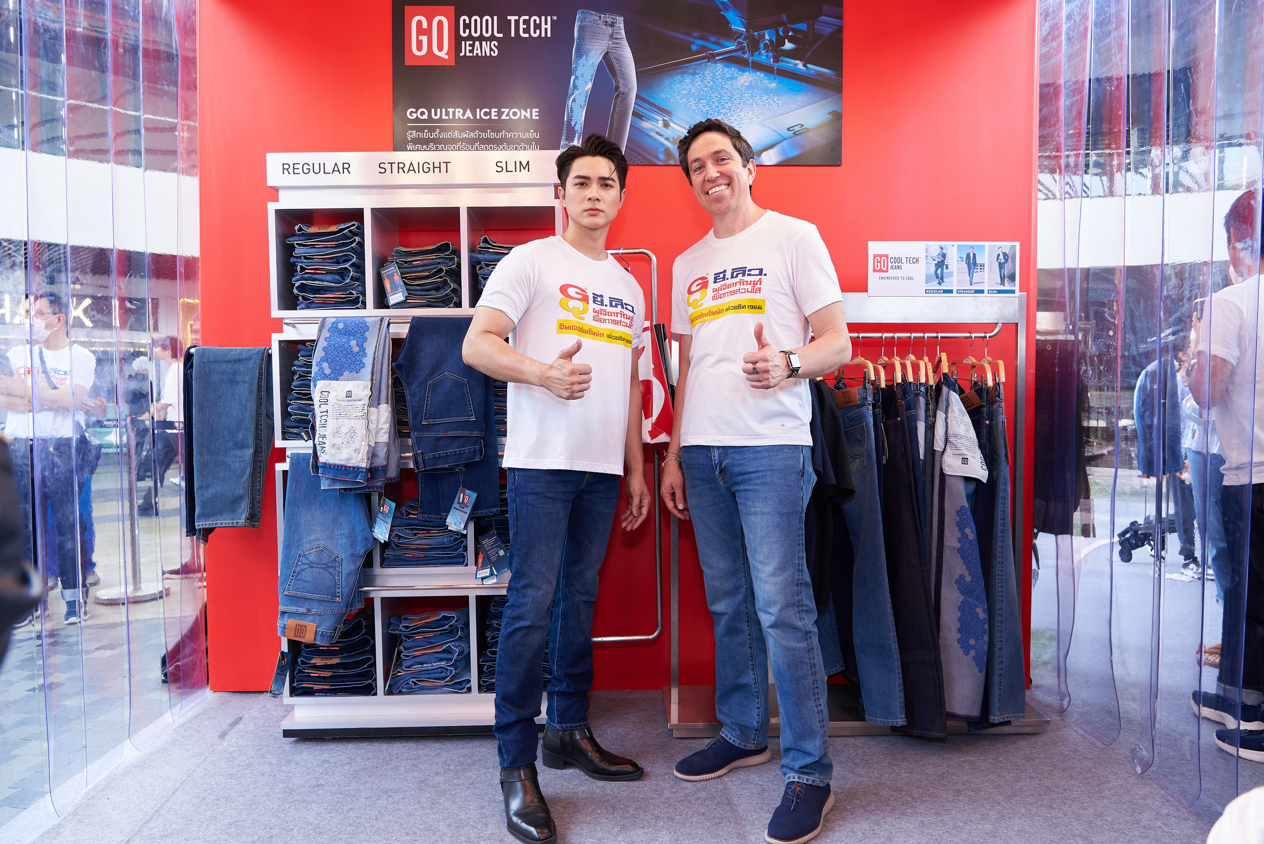 จอร์จ ฮาเทล ประธานเจ้าหน้าที่บริหารฝ่ายการตลาดและฝ่ายพัฒนาสินค้า GQ Apparel แบรนด์ผู้นำนวัตกรรมเสื้อผ้าสำหรับผู้ชาย กล่าวว่า นับเป็นโอกาสดี ในครั้งนี้ที่ GQ ได้ น้องแน็ก ชาลี ไตรรัตน์ พระเอกมาดติสท์ สายฮา ตัวแทนผู้ชายไทยรุ่นใหม่ที่ชื่นชอบการสวมใส่กางเกงยีนส์ในชีวิตประจำวันมาร่วมเปิดตัว GQ COOL TECH™ JEANS กางเกงยีนส์เย็น ไอเทมแห่งปี กางเกงยีนส์ที่เป็นมากกว่าเครื่องแต่งกาย แต่ยังตอบโจทย์การสวมใส่ในชีวิตประจำวัน ช่วยรับมือกับสภาพอากาศประเทศไทย ด้วยการผสานระหว่างเทคโนโลยีเนื้อผ้าสุดล้ำ กับนวัตกรรมเจลเย็น Cool Tech เข้ากับดีไซน์ที่ทันสมัย สอดรับกับเทรนด์แฟชั่นยุคใหม่อย่างลงตัว มั่นใจกับคุณภาพระดับสากล ผลิตโดยผ้ายีนส์คุณภาพสูง มีความทนทาน และตัดเย็บอย่างประณีตอย่างมีเอกลักษณ์ที่ไม่เหมือนใคร โดดเด่นกับเส้นใยแบบเกลียวที่ยืดหยุ่น แต่ไม่ย้วย กระชับทรงสวย ช่วยระบายอากาศได้ดี แห้งไว สัมผัสความเย็นฉ่ำทันทีที่สวมใส่ จากนวัตกรรมโซนเย็นพิเศษบริเวณขาด้านใน สามารถช่วยลดอุณหภูมิลงได้สูงสุดถึง 2 องศาเซลเซียส ให้ความรู้สึกเย็นสบายแม้ในวันที่อากาศร้อนจัด ตอบโจทย์การสวมใส่ในชีวิตประจำวันกับสภาพอากาศประเทศไทย