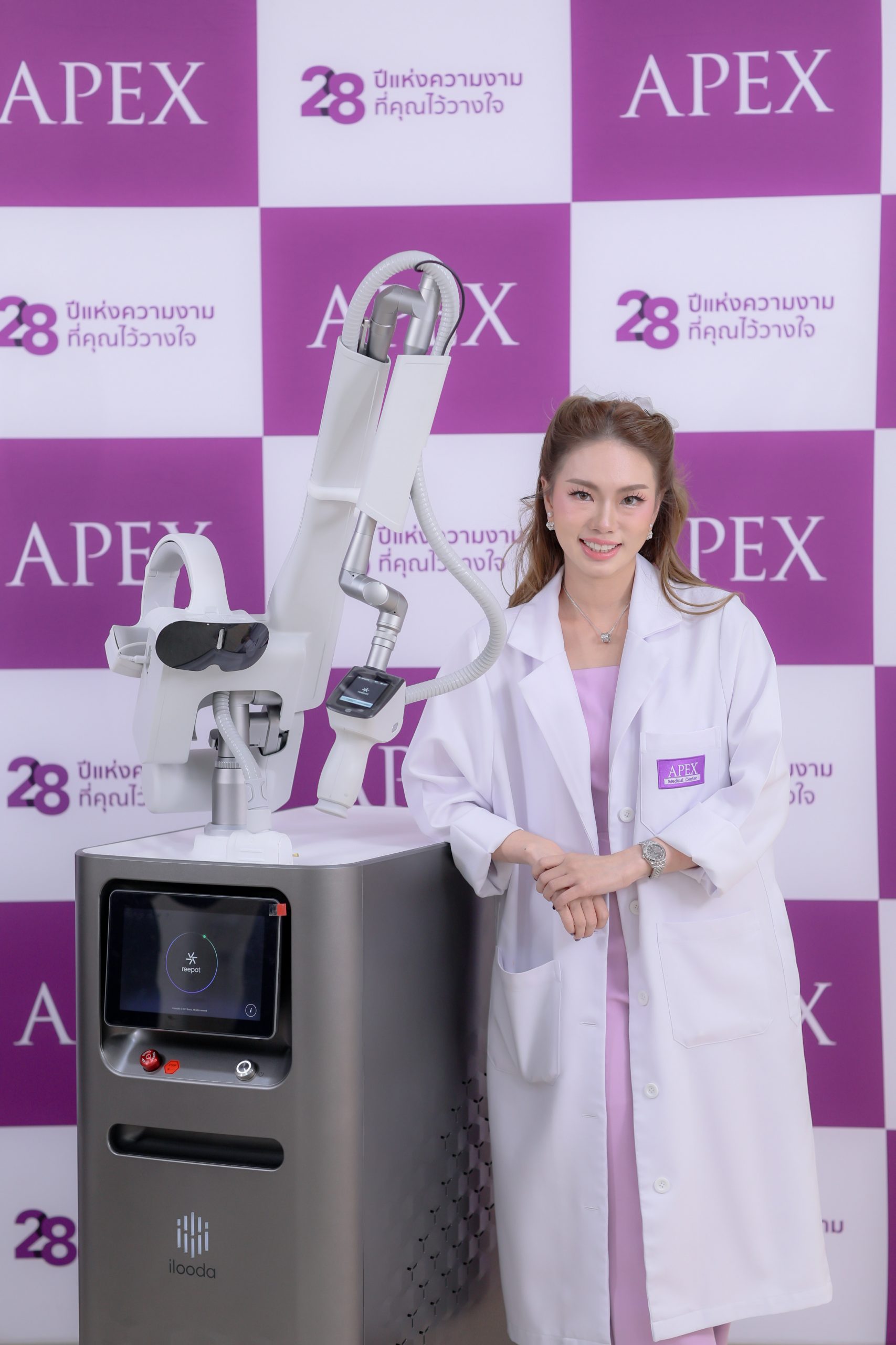 APEX สถาบันความงามที่มีสาขามากที่สุดในเมืองไทย และยังได้รับความเชื่อมั่นจากลูกค้ามาอย่างยาวนานถึง 28 ปี เปิดตัวนวัตกรรมเลเซอร์ AI REEPOT อัจฉริยะใหม่ล่าสุดที่แรกในประเทศไทย กับนวัตกรรมเลเซอร์ ที่มีประสิทธิภาพแม่นยำ และตอบโจทย์ที่สุดสำหรับการรักษาปัญหาผิว ให้ผลลัพธ์ที่ดีกว่าที่เคยมี ด้วยการวิเคราะห์ภาพแบบ “LESION Target Laser” เป็นการตอกย้ำการเป็นอันดับหนึ่งด้านความงามที่ครบวงจรที่สุดในประเทศไทย ที่แรกและที่เดียวเฉพาะที่ APEX เท่านั้น