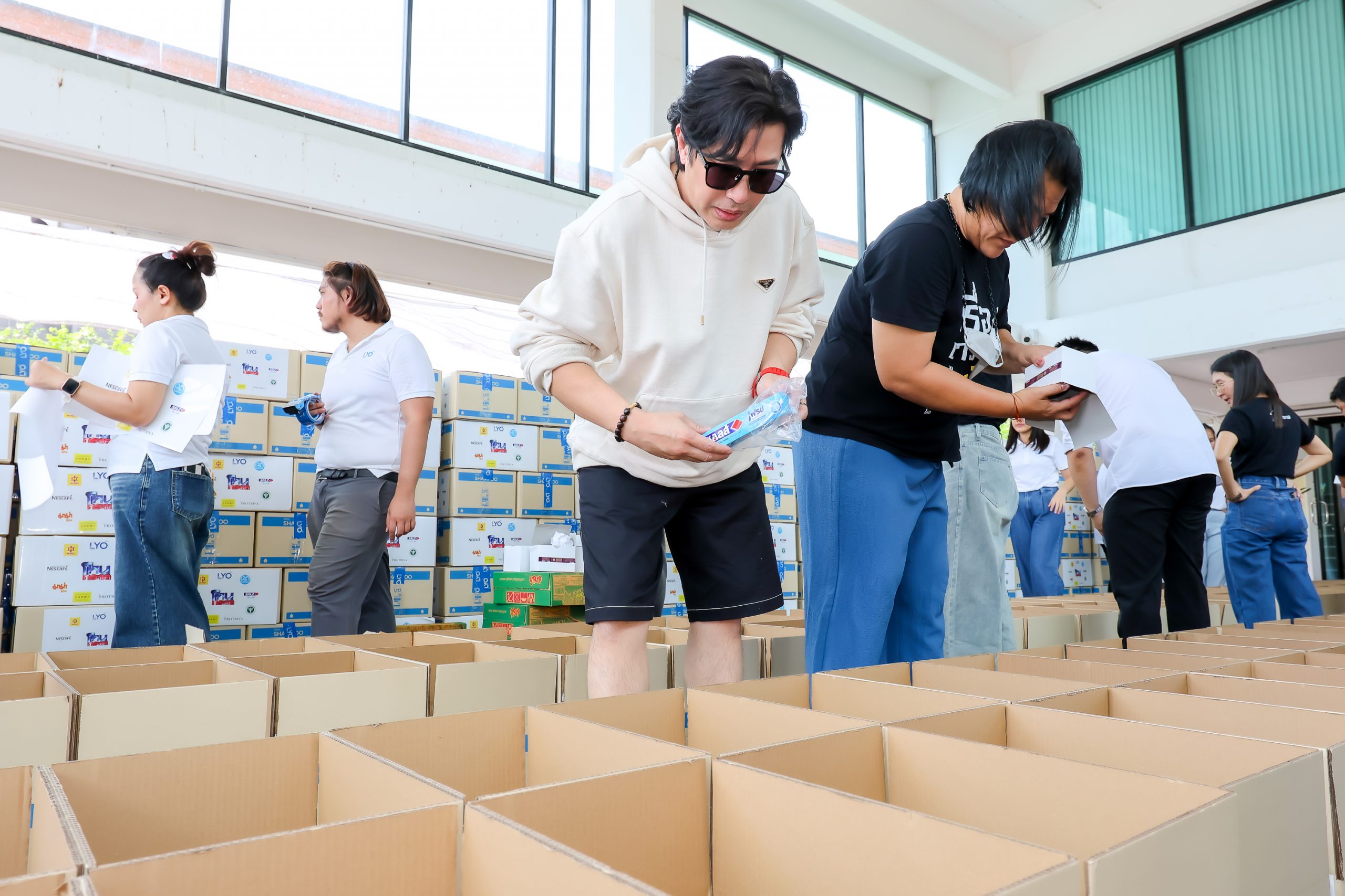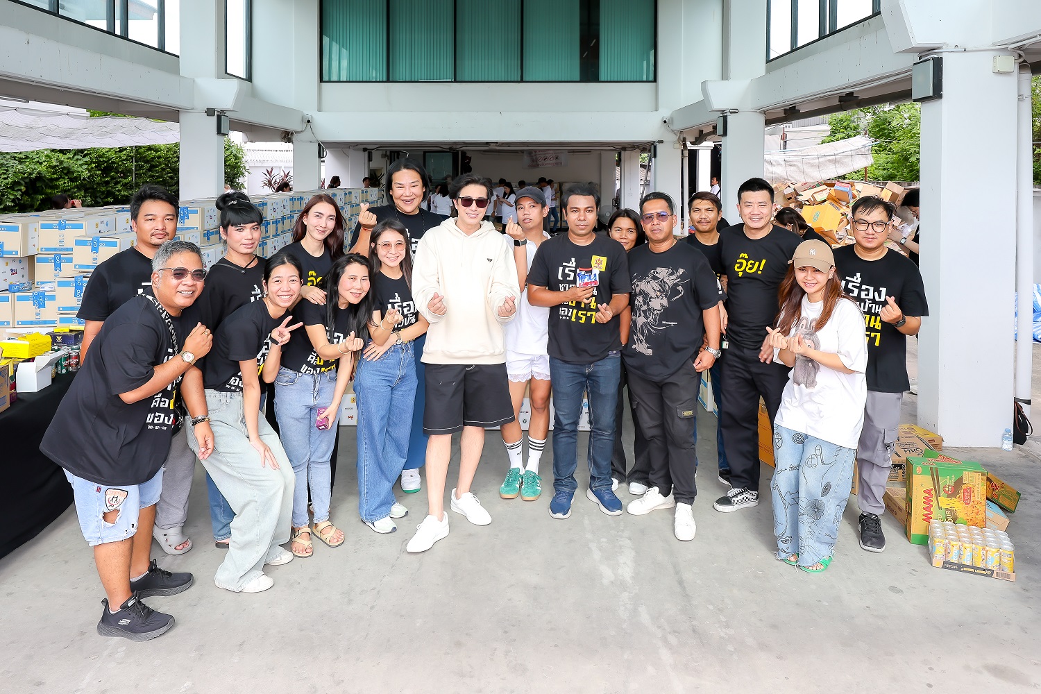 โดย หนุ่ม กรรชัย กำเนิดพลอย เปิดเผยว่า “วันนี้เราระดมทีมงาน โหนกระแส และ ไลโอ มาช่วยกันแพ็คของเพื่อส่งต่อให้พี่น้องผู้ประสบอุทกภัย ซึ่งสิ่งของทั้งหมดก็ได้รับการสนับสนุนมาจากพันธมิตรของผมที่ผมเป็นพรีเซ็นเตอร์อยู่ด้วย และพันธมิตรของรายการ โหนกระแส ทุกสินค้าน่ารักมากส่งของมาช่วยกัน ซึ่งครั้งนี้เป็นครั้งที่ 2 ที่เราจัดทำกล่องอิ่ม ช่วงโควิดเราเคยจัดทำโครงการแบบนี้มาแล้วครั้งนึง สำหรับกล่องอิ่มที่เราจัดทำ จะส่งกระจายไปเกือบทุกพื้นที่ ซึ่งตอนนี้ได้ประสานหน่วยงานต่างๆ ให้กระจายเป็นที่เรียบร้อยแล้ว เชื่อว่ากล่องอิ่มที่พวกเราจัดทำจะช่วยแบ่งเบาความเดือดร้อนของพี่น้องไม่มากก็น้อยครับ”