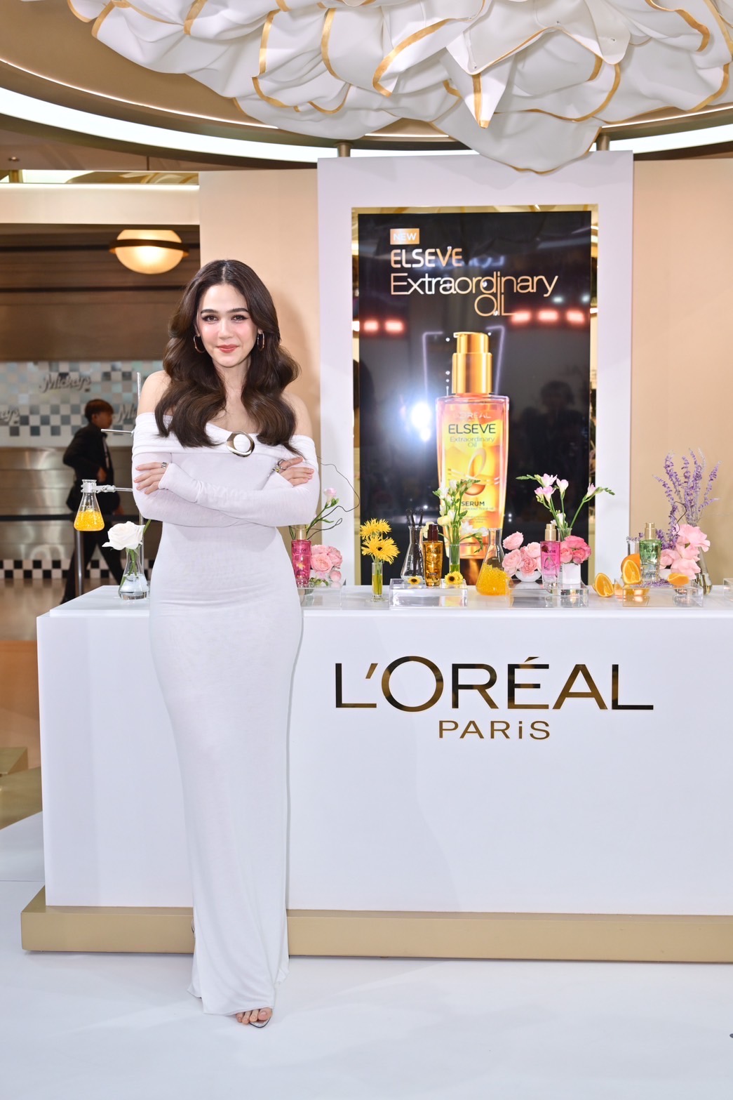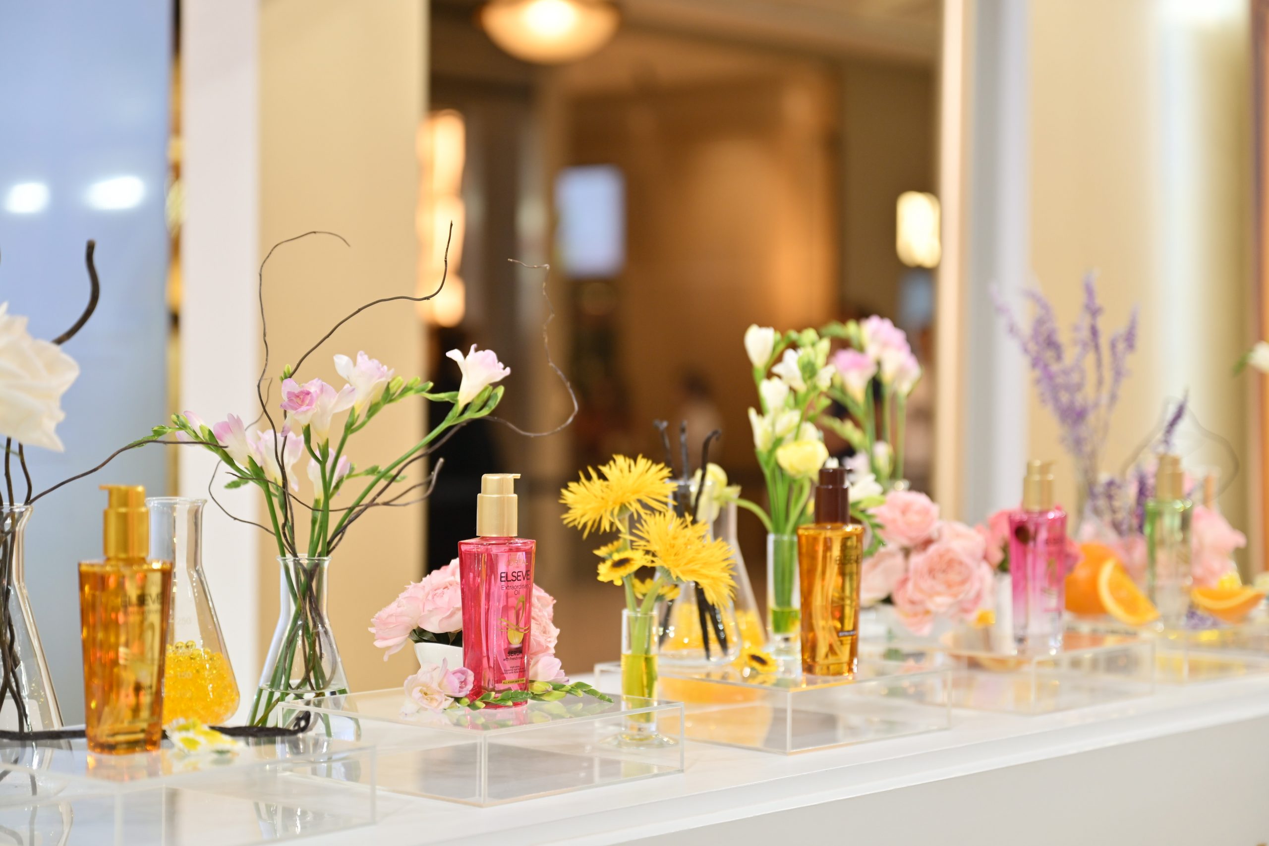พิสูจน์ผมนุ่มสลวย ด้วยเซรั่มทรีทเมนต์อันดับ 1 ของโลก L’Oreal Paris Elseve Extraordinary Oil โดยภายในงานมีจุดให้ทดลองกลิ่นน้ำหอมของออยล์บำรุงผมที่มีส่วนผสมจากดอกไม้ถึง 6 ชนิด ได้แก่ ดอกบัว, ดอกพุดซ้อน, ดอกกุหลาบ, ต้นปอ, ดอกคาโมมายล์ และดอกทานตะวัน ให้ผมหอมยาวนานตลอดวัน สามารถใช้ได้หลากหลายวัตถุประสงค์ ทั้งการมาส์กผม หรือปกป้องผมจากความร้อน เนื้อเซรั่มบางเบา ไม่ทำให้ผมมันหรือดูลีบแบน มีน้ำหนัก จัดทรงง่ายยิ่งขึ้น