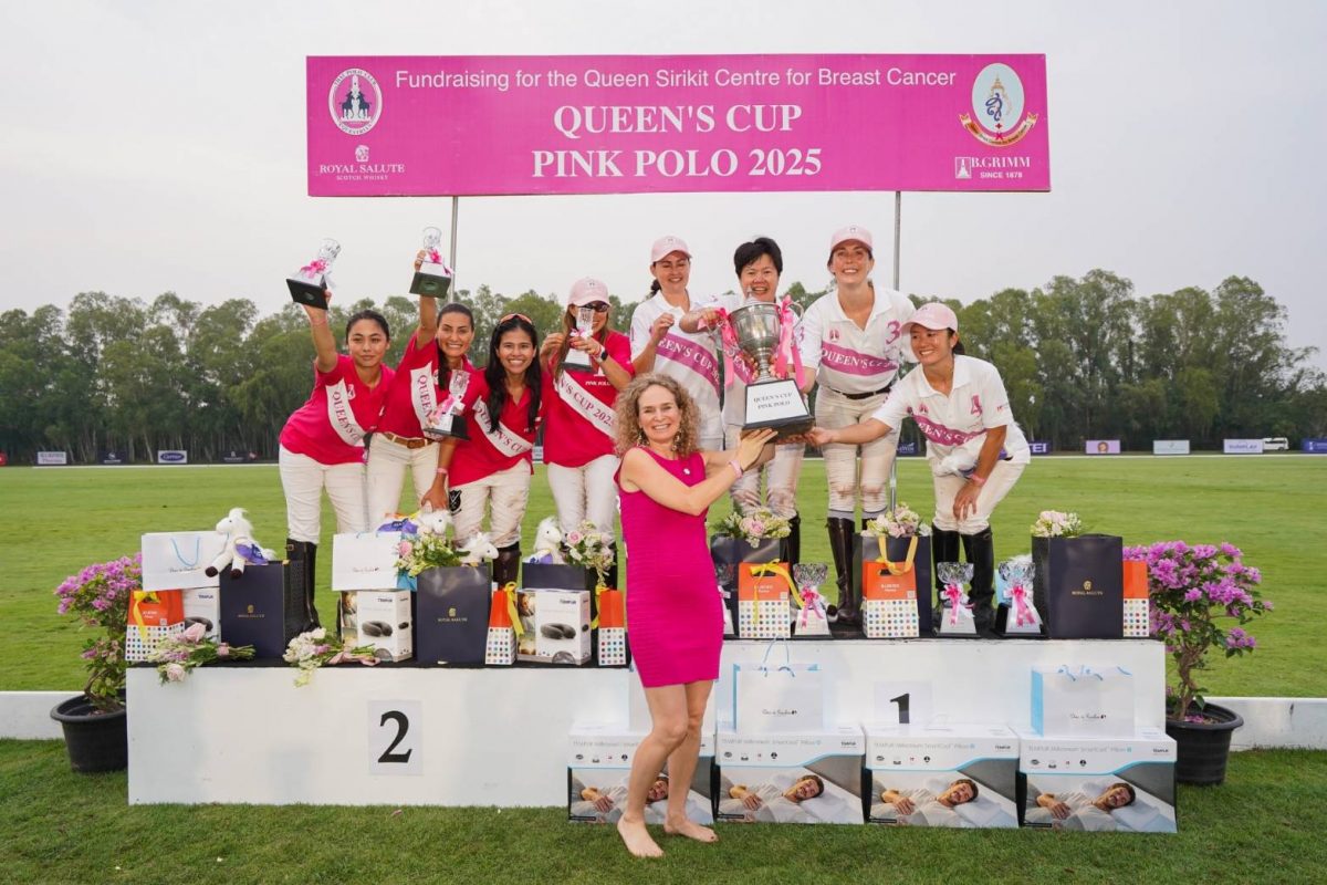 เสร็จสิ้นลงไปอย่างงดงามสำหรับการจัดการแข่งขันขี่ม้าโปโลหญิงการกุศล รายการ “ควีนส์คัพ พิงค์ โปโล 2025” (Queen’s Cup Pink Polo 2025) ชิงถ้วยพระราชทาน สมเด็จพระนางเจ้าสิริกิติ์ พระบรมราชินีนาถ พระบรมราชชนนีพันปีหลวง เพื่อหารายได้มอบให้ โครงการมะเร็งเต้านม มูลนิธิศูนย์มะเร็งเต้านมเฉลิมพระเกียรติ ที่จัดโดย บี.กริม นำโดย มร.ฮาราลด์ ลิงค์ ประธาน บี.กริม ในฐานะนายกสมาคมกีฬาขี่ม้าแห่งประเทศไทย พร้อมด้วย นันทินี แทนเนอร์ อุปนายกสมาคมฯ ประธานจัดการแข่งขันขี่ม้าโปโลหญิงการกุศล เมื่อวันวันเสาร์ที่ 22 กุมภาพันธ์ 2568 ที่ผ่านมา ณ สนามไทย โปโล แอนด์ อีเควสเทรียน คลับ พัทยา ในรอบชิงชนะเลิศปีนี้ เป็นการแข่งขันระหว่างทีมเจ้าภาพไทย โปโล (Thai Polo) ประเทศไทย และทีม MALAYSIA ประเทศมาเลเซีย ซึ่งทีมชนะเลิศได้ถ้วยพระราชทานฯ ไปครอง ได้แก่ ทีม ไทย ทีม MALAYSIA ประเทศมาเลเซีย ท่ามกลางเสียงกองเชียร์ที่ส่งเสียงเชียร์อย่างสนุกสนาน