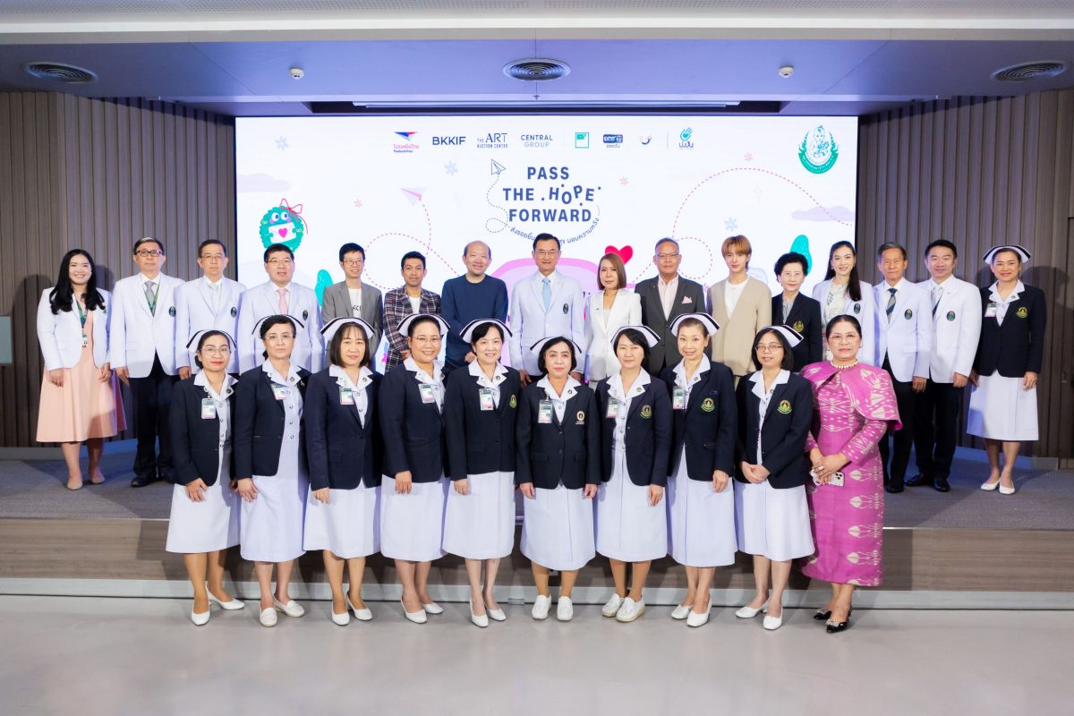 อัศวิน ตีระวัฒนพงษ์ ผู้ช่วยกรรมการผู้จัดการใหญ่อาวุโส ฝ่ายโครงการพิเศษ กลุ่มเซ็นทรัล กล่าวว่า “เนื่องด้วยกลุ่มเซ็นทรัลเป็นกลุ่มบริษัทผู้นำด้านธุรกิจค้าปลีกและบริการทั้งในประเทศไทยและต่างประเทศมีความยินดีในการสนับสนุนโครงการ ‘Pass the Hope Forward’ โดยกลุ่มเซ็นทรัลมีความมุ่งมั่นในการยกระดับคุณภาพชีวิตของคนไทยภายใต้โครงการเพื่อสังคม “เซ็นทรัล ทำ” อย่างต่อเนื่องอยู่แล้ว จึงตรงกับความตั้งใจของโครงการนี้ที่จะช่วยยกระดับคุณภาพชีวิตของผู้ป่วย ให้ได้รับการรักษาที่รวดเร็วยิ่งขึ้น ทั้งนี้ กลุ่มเซ็นทรัลจึงเชิญชวนธุรกิจในกลุ่มที่เหมาะสมมาเป็นกระบอกเสียงในการช่วย Pass the Hope Forward ให้ตรงกลุ่มเป้าหมายที่สุด ได้แก่ กลุ่มห้างสรรพสินค้าเซ็นทรัล ในเครือเซ็นทรัล รีเทล, กลุ่มเซ็นทรัล ฟู้ด รีเทล ในเครือเซ็นทรัล รีเทล และ B2S และ OfficeMate โดยทั้ง 3 กลุ่มธุรกิจนี้ได้ร่วมสนับสนุนช่องทางการจัดจำหน่ายโปสการ์ด Pass the Hope Forward เพื่อให้ประชาชนสามารถเข้าถึงและร่วมเป็นส่วนหนึ่งของโครงการนี้ได้สะดวกยิ่งขึ้น แต่นอกจากการที่เราเป็นช่องทางจัดจำหน่ายแล้ว เรายังอยากชวนทุกคนมา “ทำดีด้วยกัน” เพราะเราเชื่อในพลังแห่งการทำ และการแก้ปัญหาหรือสร้างการเติบโตอย่างยั่งยืนไม่สามารถสร้างได้ด้วยใครเพียงคนเดียว เราในฐานะที่เป็นหนึ่งในศูนย์กลางการใช้ชีวิตของผู้คน จึงอยากส่งเสริมและชวนให้ทุกคนมาร่วมลงมือทำสิ่งดีๆ ด้วยกันเสมอ”