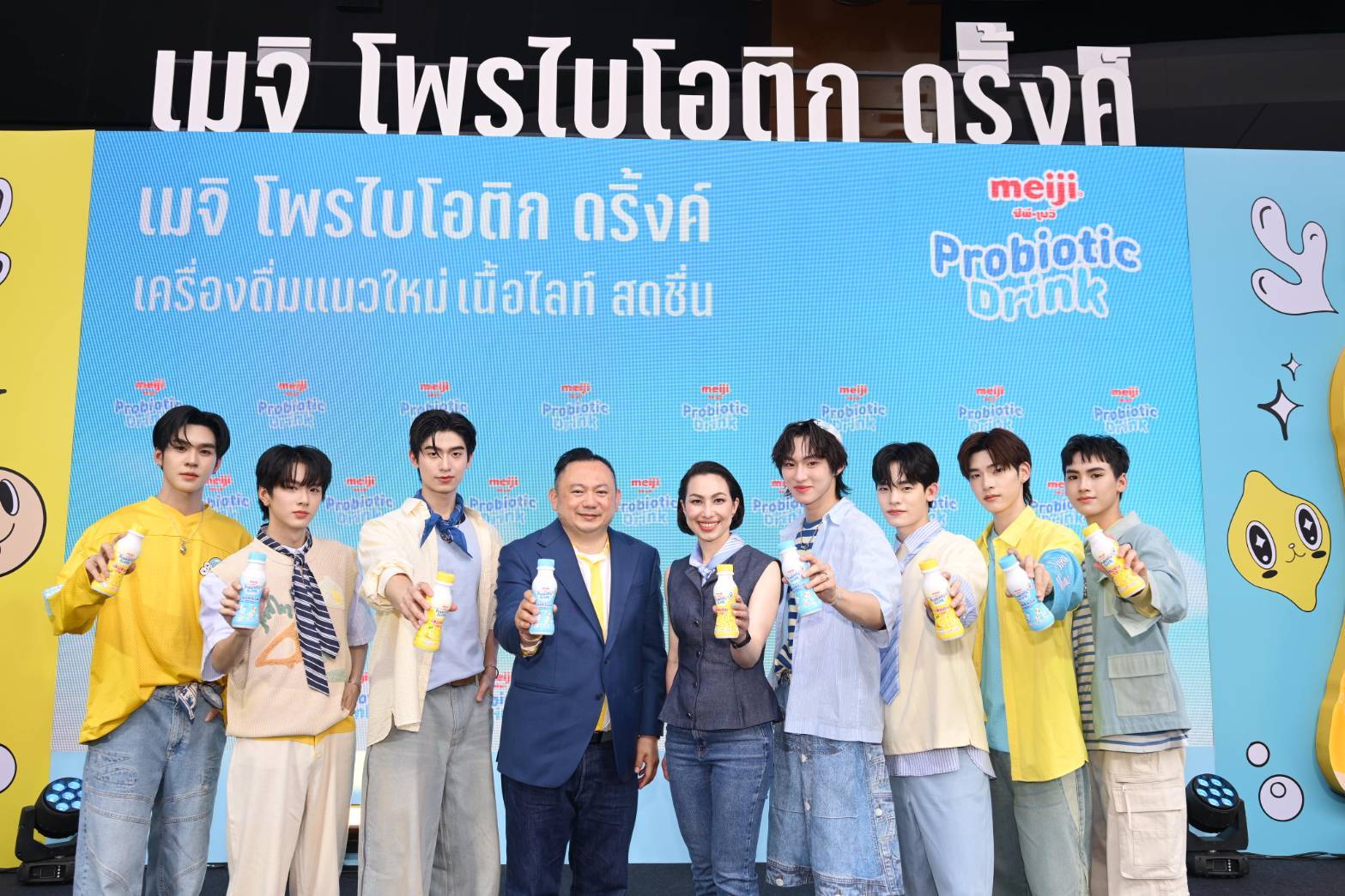 นักแสดงสุดฮอตจากซีรีส์กี่หมื่นฟ้านำโดย โทมัส-ก้อง, อู่อู๋-เซฟ, ป๋อ-ตี๋ตี๋ แพทจิ และศิลปิน T-POP กว่า 10 ชีวิต ร่วมเปิดตัวแบรนด์เครื่องดื่มแนวใหม่สไตล์ญี่ปุ่นจาก ซีพี-เมจิ ‘เมจิ โพรไบโอติก ดริ้งค์’ ที่มาเสิร์ฟความเฟรชสุดฟินรับซัมเมอร์ตอบโจทย์ไลฟ์สไตล์ Gen Z เพราะมีเนื้อสัมผัสไลท์บางเบา สดชื่น ดื่มง่าย พร้อมประโยชน์อัดแน่นจากจุลินทรีย์โพรไบโอติก ในสูตรไม่เติมน้ำตาล และไม่มีไขมัน มาพร้อมกัน 2 รสชาติ รสออริจินัล และรสเลมอน และเชิญชวนให้มาร่วมพิสูจน์ความสดชื่น สนุกไปกับบรรยากาศซัมเมอร์สไตล์ญี่ปุ่นในงาน “Meiji Probiotic Drink AHHH-RO-I Summer” ณ สยามสแคว์วัน (BTS Skywalk) ในวันที่ 4 เมษายน 2568 ที่ผ่านมา