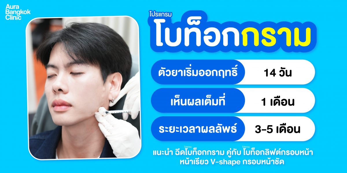สำหรับคนที่สนใจฉีดโบท็อกกราม เพื่อปรับรูปหน้าให้เรียวขึ้น แต่ไม่รู้จะเลือกฉีดที่ไหนดี ที่ Aura Bangkok Clinic คลินิกเสริมความงามที่มีสาขาทั่วกรุงเทพและปริมณฑล คลินิกมีประสบการณ์ดูแลลูกค้ากว่าแสนเคส มีโบท็อกแท้จากแบรนด์ชั้นนำให้เลือกใช้ตามความต้องการ โดยแพทย์จะเปิดกล่องโบท็อกเหมาขวด พร้อมผสมยาให้ดูต่อหน้า พร้อมให้กล่องโบท็อกกลับบ้าน