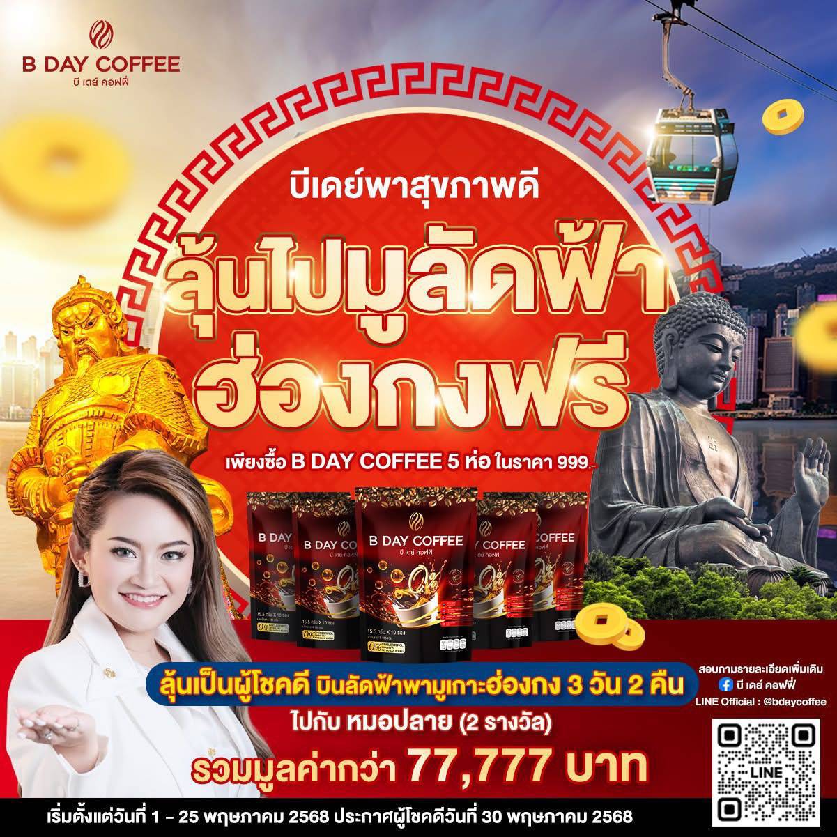 และความพิเศษอีกอย่างในครั้งนี้คือ กาแฟ B-DAY ได้ร่วมทริปมูกับ รายการมูเตเลดี้ โดยทุกท่าน ร่วมลุ้นเป็นผู้โชคดี ร่วมเดินทางไปกับ รายการมูเตเลดี้ และกาแฟ B DAY COFFEE กาแฟเพื่อสุขภาพ แจกแพคเกจทัวร์ฮ่องกงฟรี จำนวน 2 รางวัล รวมมูลค่ากว่า 77,777 บาท เพียงซื้อกาแฟ B DAY COFFEE ในราคาโปรโมชั้น 5 ห่อ 999 บาท จากปกติราคา 2,950 บาท (รับทันที 1 สิทธิ์) สนใจสอบถาม / สั่งซื้อ กาแฟ 092-4939399
