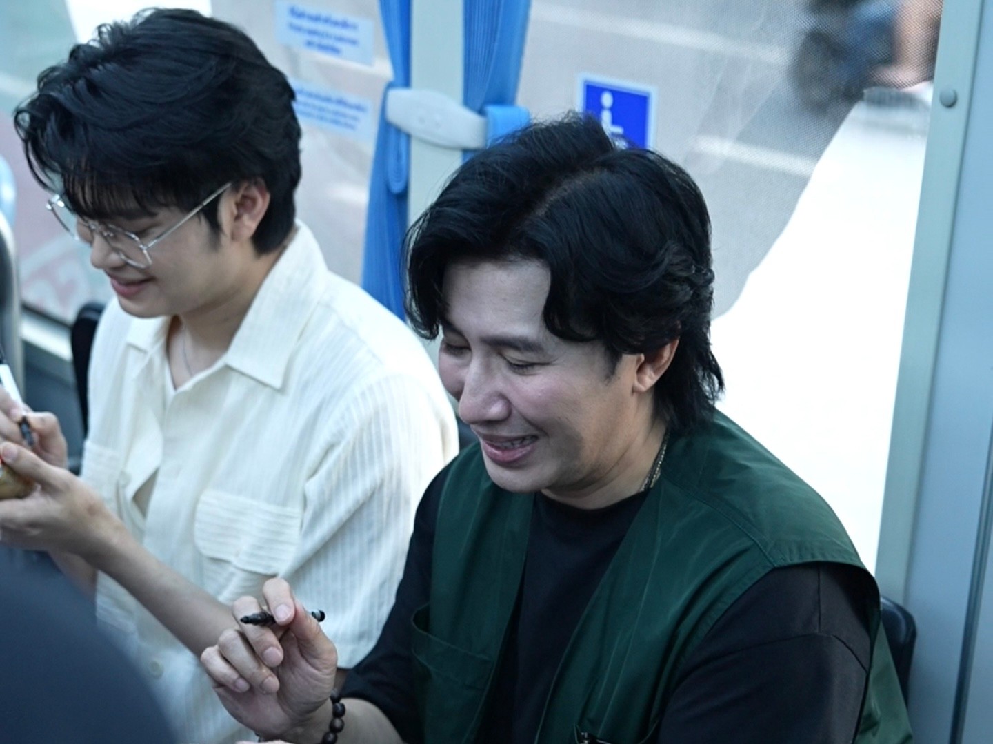 นนท์ ธนนท์ พรีเซนเตอร์เนสกาแฟกระป๋อง พูดว่า “กิจกรรมนี้สนุกมากเลยครับ แปลกใหม่ ได้มาขึ้นรถเมล์กับพี่หนุ่ม เห็นพี่หนุ่มแวบแรก ถึงจะยังไม่ค่อยชิน แต่งานนี้พี่หนุ่มเต็มที่มาก ดีใจที่ได้มาเจอแฟน ๆ เจอทุกคน ก็หวังว่าทุกคนจะได้สนุกกับกิจกรรมบนรถเมล์ครั้งแรกของพวกเรานะครับ”