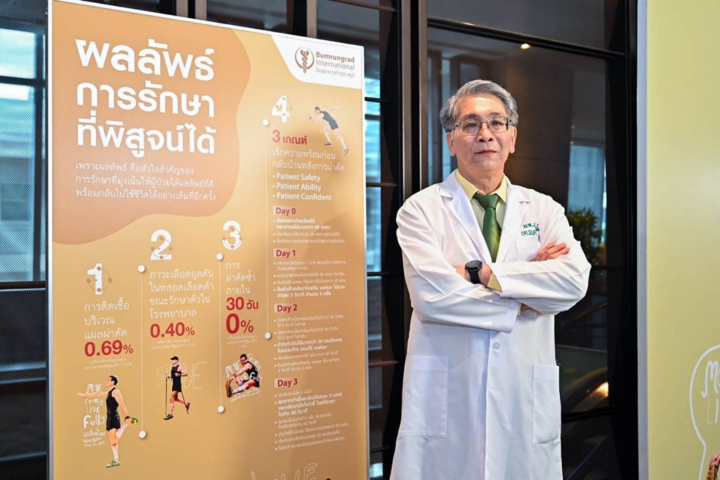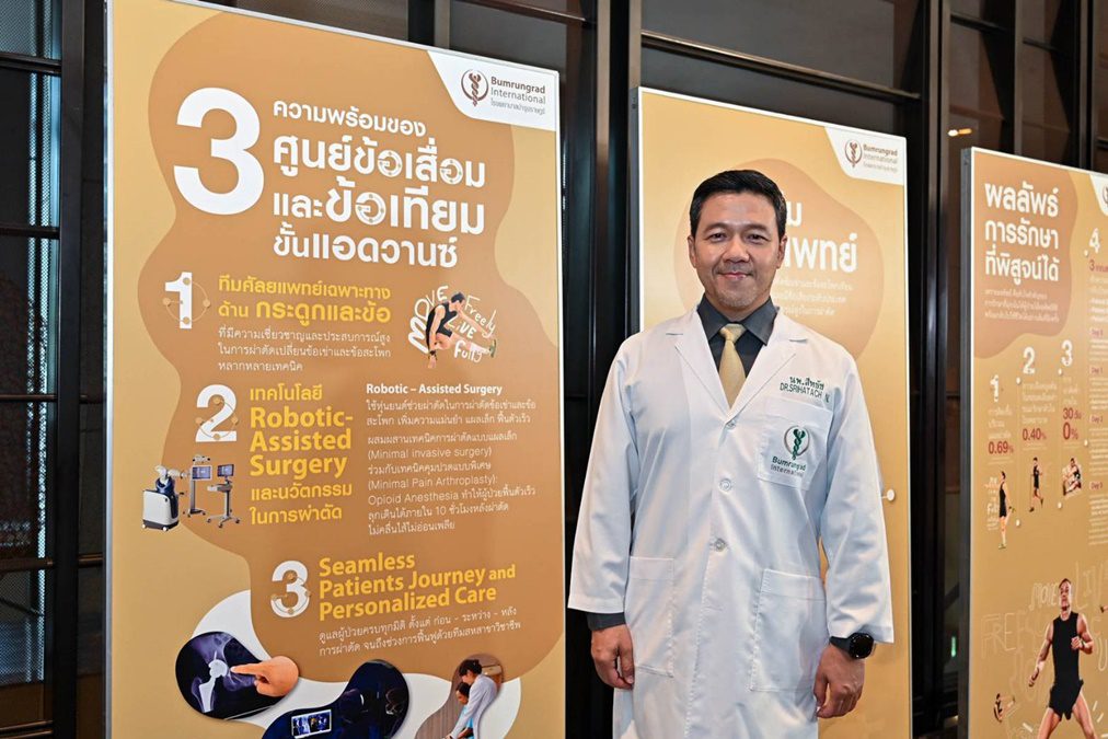 นพ. สุรพจน์ เมฆนาวิน แพทย์เฉพาะทางด้านศัลยศาสตร์กระดูกและข้อ การผ่าตัดเปลี่ยนข้อเทียม โรงพยาบาลบำรุงราษฎร์ กล่าวถึงแนวทางการดูแลผู้ป่วยแบบองค์รวมและเฉพาะบุคคล (Seamless Patients Journey and Personalized Care) ซึ่งครอบคลุมตั้งแต่การวินิจฉัยไปจนถึงการฟื้นฟูและติดตามผล เพื่อให้ผู้ป่วยปลอดภัย ฟื้นตัวไว ลดภาวะแทรกซ้อน และลดระยะเวลาการพักฟื้นในโรงพยาบาล ช่วยลดภาระค่าใช้จ่ายและความเครียดของผู้ป่วยได้อย่างมาก ผลลัพธ์ทางคลินิกที่โดดเด่นสะท้อนถึงคุณภาพการรักษา ไม่ว่าจะเป็น อัตราการติดเชื้อบริเวณแผลผ่าตัด เพียง 0.69% (เทียบกับโรงพยาบาลชั้นนำในสหรัฐอเมริกา 1.03%) อัตราการเกิดภาวะลิ่มเลือดอุดตันในหลอดเลือดดำระหว่างการรักษาในโรงพยาบาล อยู่ที่ 0.40% (เทียบกับโรงพยาบาลชั้นนำในสหรัฐอเมริกา 1.62%) และ อัตราการกลับมาผ่าตัดซ้ำภายใน 30 วัน อยู่ที่ 0% (เทียบกับโรงพยาบาลชั้นนำในสหรัฐอเมริกา 1.18%) นอกจากนี้ ทางศูนย์ฯ ยังมีเป้าหมายให้ผู้ป่วยสามารถลุกเดินด้วยตนเองโดยใช้อุปกรณ์ช่วยเดินในระยะทางอย่างน้อย 15 เมตร ภายใน 3 วันหลังการผ่าตัด ซึ่งทั้งหมดนี้แสดงให้เห็นถึงความมุ่งมั่นในการคืนคุณภาพชีวิตที่ดีที่สุดให้กับผู้ป่วยได้อย่างยั่งยืน