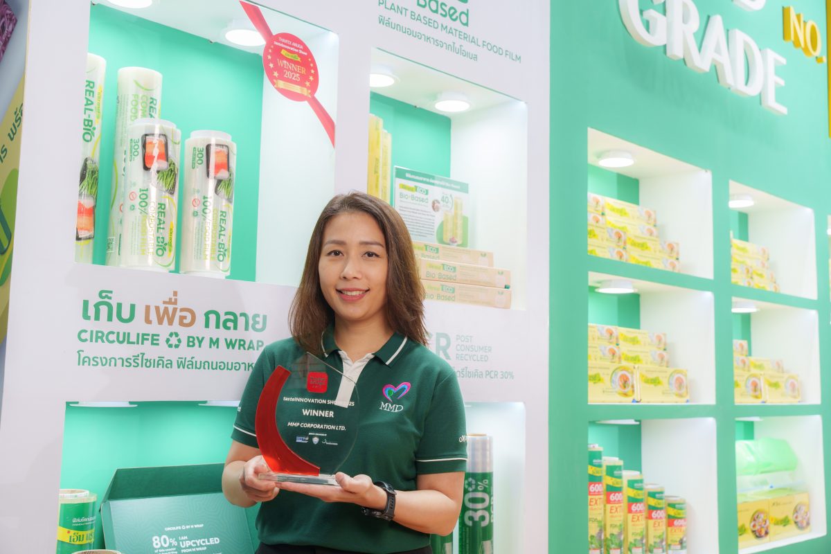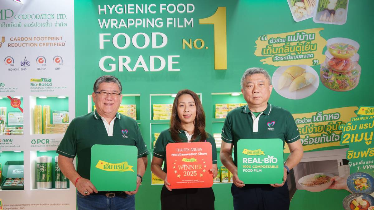 ทั้งนี้ M Wrap® Real Bio 100% Compostable Food Film คว้ารางวัล tasteInnovation Show Winners ในงาน THAIFEX – Anuga Asia 2025 เป็น 1 ใน 10 ที่ได้รับการคัดเลือกจากผลิตภัณฑ์กว่า 800 รายการ ด้วยโซลูชันที่ล้ำสมัย พิจารณาจากความคิดสร้างสรรค์ และนวัตกรรมในเทรนด์สำคัญของอุตสาหกรรมอาหารและเครื่องดื่ม รวมถึงด้านความยั่งยืน (sustainability) เป็นบรรจุภัณฑ์เพื่อสิ่งแวดล้อม M Wrap® Real Bio โดดเด่นในฐานะฟิล์มถนอมอาหารที่ผลิตจากวัสดุชีวภาพ 100% ย่อยสลายได้ตามธรรมชาติ ไม่ทิ้งสารตกค้างต่อสิ่งแวดล้อม ถือเป็นนวัตกรรมบรรจุภัณฑ์รักษ์โลกที่ตอบโจทย์ความต้องการของผู้บริโภครุ่นใหม่ที่ใส่ใจทั้งคุณภาพชีวิต และสิ่งแวดล้อม