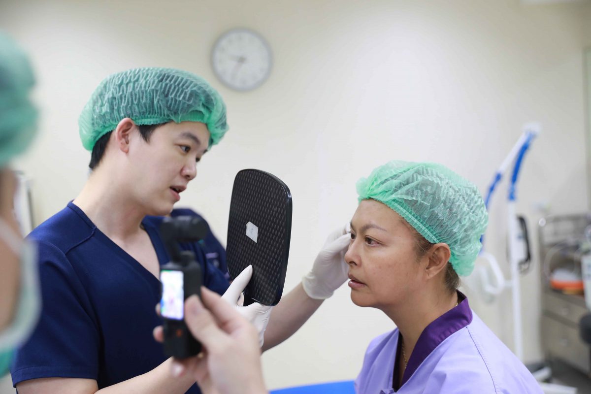 “บุญพาวาสนาส่ง เพราะรู้จักอาจารย์หมอมานานมากแล้ว สมัยก่อนเคยพาเพื่อนไปทำหน้า พาสามีไปทำตาด้วย แต่ตัวเองยังไม่เคยได้ทำ มาเจอกันตอนอายุ 55 อาจารย์เห็นหน้าเรา..หนังตาเริ่มตกทำให้เห็นชั้นตาไม่ชัด ผิวเริ่มแห้งกร้าน ไม่สดใสดูแก่ อาจารย์มาจับๆ แล้วก็บอกว่า ถึงเวลาต้องทำแล้วนะ!!! แค่นั้นเราก็ได้ค่ะ…”