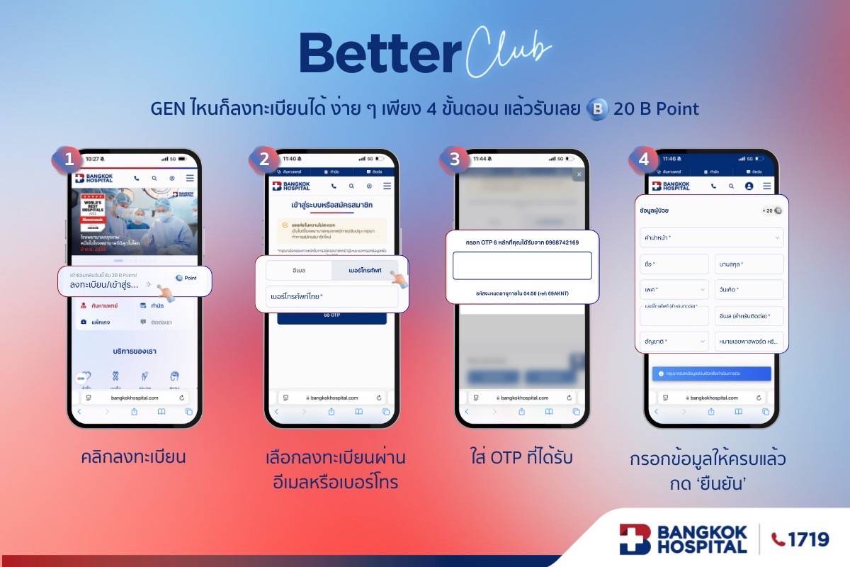 ใคร ๆ ก็เริ่มต้นดูแลสุขภาพได้ เพียงสมัครสมาชิก Better Club ง่าย ๆ วันนี้ ผ่านทางเว็บไซต์ของโรงพยาบาลกรุงเทพ bangkokhospital.com