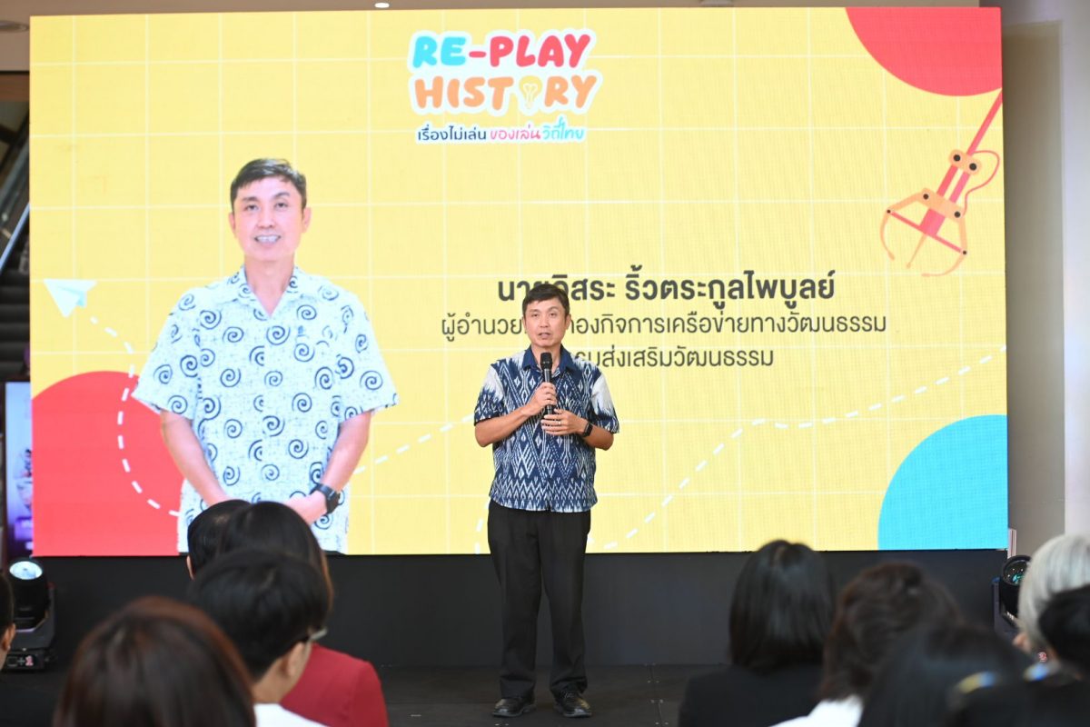กรมส่งเสริมวัฒนธรรม ร่วมกับ บริษัท ปีเตอร์มู จำกัด และ ICS Lifestyle Complex เปิดตัวนิทรรศการ “RE-PLAY HISTORY: NEXT GEN TOY SHOWCASE จากรากวัฒนธรรม สู่ของเล่นไทยยุคใหม่” ซึ่งจัดขึ้น ณ ICS Lifestyle Complex ตรงข้ามไอคอนสยาม โดยงานได้รับเกียรติจาก นายอิสระ ริ้วตระกูลไพบูลย์ ผู้อำนวยการกองกิจการเครือข่ายทางวัฒนธรรม กรมส่งเสริมวัฒนธรรม ให้เกียรติกล่าวเปิดงาน พร้อมด้วย คุณไพรัช วิเศษศิริลักษณ์ ผู้บริหารสายงานบริการลูกค้า บริษัท ไอซีเอส จำกัด คุณอังศุมาลิน เทพหัสดิน ผู้บริหาร บริษัท ปีเตอร์มู จำกัด คุณอุไรวรรณ บุนนาค นายกสมาคมการค้าของเล่นและผลิตภัณฑ์เด็กไทย คุณอารีย์รัชต์ ชวกาญจนกิจ ผู้อำนวยการฝ่ายส่งเสริมนวัตกรรมการเรียนรู้ OKMD คุณประเวศน์ หงส์ทอง ผู้จัดการฝ่ายการออกแบบและพัฒนาผลิตภัณฑ์ บริษัท แปลน ครีเอชั่นส์ จำกัด คุณประดิษฐ์ รัตนวิจิตราศิลป์ อาจารย์พิเศษ ภาควิชาการตลาด Chulalongkorn Business School พันธมิตรและคณะกรรมการ เข้าร่วมงาน