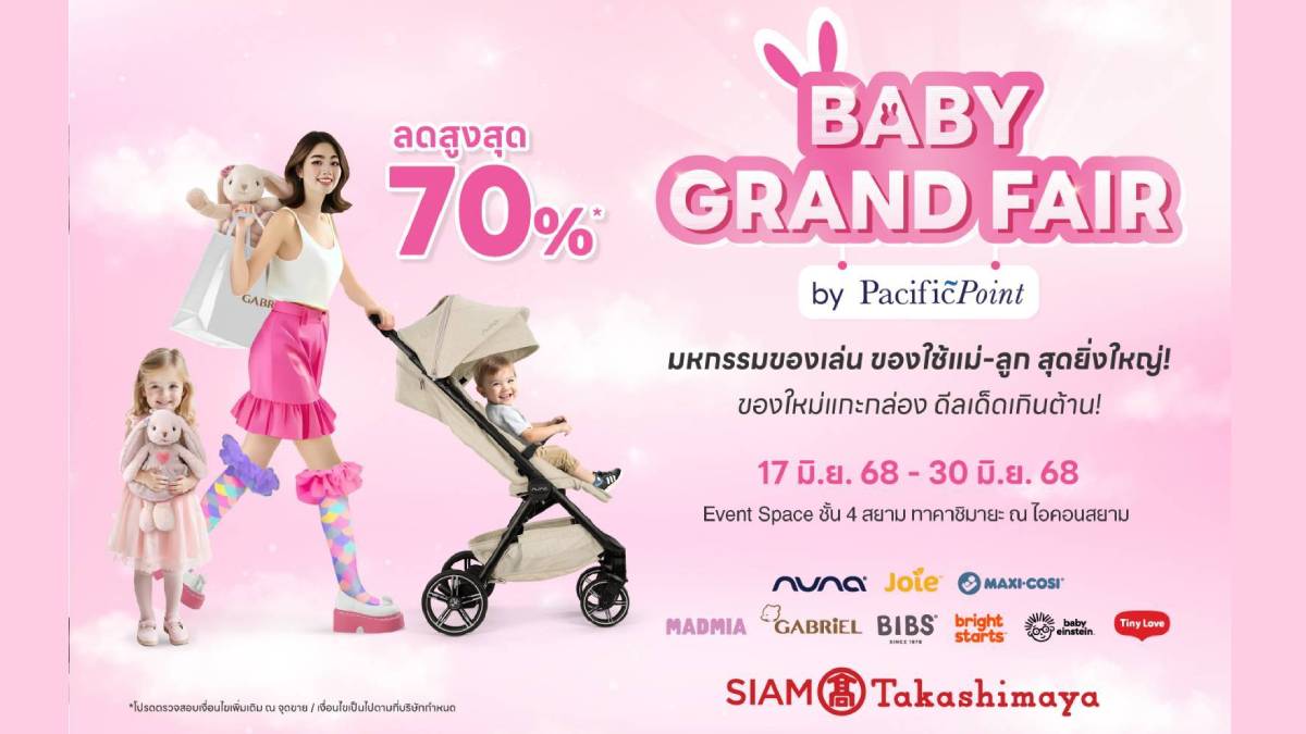 มาร่วมสร้างความสุขและเสริมสร้างพัฒนาการที่ดีที่สุดให้กับลูกน้อยของคุณในงาน “Baby Grand Fair by Pacific Point” ตั้งแต่วันที่ 17 – 30 มิถุนายน 2568 ณ Event Space ชั้น 4 สยาม ทาคาชิมายะ ไอคอนสยาม ถนนเจริญนคร