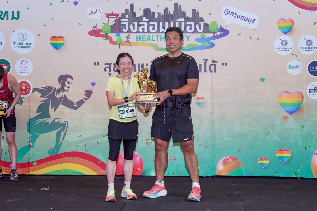 สำหรับกิจกรรม “วิ่งล้อมเมือง Healthy City @ กรุงธนบุรี” ครั้งที่ 1 ซึ่งจัดขึ้นที่ไอคอนสยาม ในวันอาทิตย์ที่ 15 มิถุนายน 2568 แบ่งออกเป็น ระยะทาง 3 กิโลเมตร ปล่อยตัวจากไอคอนสยาม ผ่านถนนลาดหญ้า ถนนอิสรภาพ กลับตัวหน้าธนาคาร ธอส. สาขาสี่แยกบ้านแขก และมาสิ้นสุดที่ไอคอนสยาม, ระยะทาง 5 กิโลเมตร ปล่อยตัวจากไอคอนสยาม ผ่านถนนลาดหญ้า ถนนอิสรภาพ กลับตัวบริเวณป้ายรถเมล์ มหาวิทยาลัยราชภัฏธนบุรี และมาสิ้นสุดที่ไอคอนสยาม สุดท้ายระยะทาง 10 กิโลเมตร ปล่อยตัวจาก ไอคอนสยาม ผ่านถนนลาดหญ้า ถนนอิสรภาพ กลับตัวตรงข้ามร้านสวัสดิการกองทัพเรือ และมาสิ้นสุดที่ไอคอนสยาม โดยมีผู้สนใจลงทะเบียนร่วมวิ่งรวมกว่า 3,000 ราย ซึ่งนอกจากจะได้ออกกำลังกาย เหล่านักวิ่งยังร่วมสนุกกับการร่วมประกวด Best Dressed Competition แต่งตัวออกมาวิ่งในธีม “เทศกาลไพรด์ Pride Month” ชิงเงินรางวัลและของรางวัลมากมาย สร้างสีสันให้กิจกรรมวิ่งล้อมเมือง Healthy City ครั้งนี้พิเศษและสนุกยิ่งขึ้น