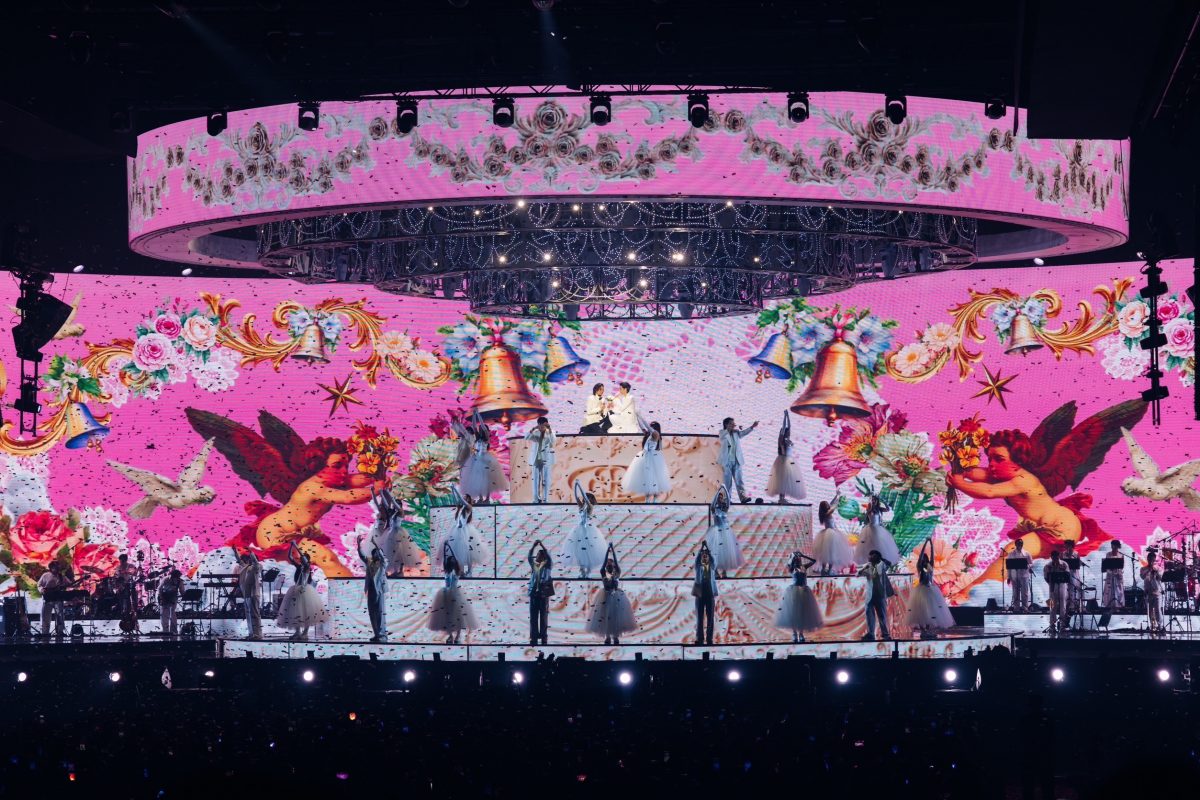 จากนั้นก็ถึงช่วงพิธีการสำคัญที่ทุกคนรอคอยคือการฉลองมงคลสมรสของ เม่นและตี่ตี๋ โดย อาม่าปุ๊ ให้เกียรติมาเป็นญาติผู้ใหญ่ฝ่าย ตี่ตี๋ และแขกรับเชิญพิเศษ อาม่าแต๋ว จากภาพยนตร์หลานม่า มาเป็นญาติผู้ใหญ่ให้ฝ่าย เม่น เพื่อร่วมฉลองให้กับหลานรักทั้งคู่ในเพลง ผ้าเช็ดหน้า ที่ครึ่งเพลงแรก 2 อาม่าร่วมร้องเป็นภาษาจีน ก่อนจะควงแขนโชว์ท่าเต้นสุดคิวต์ ถือเป็นอีกโชว์ที่โดนใจสุด ๆ เสิร์ฟความโรแมนติกกันต่อกับ VTR “A Night Before The Wedding” ที่ใส่ดีเทลต่าง ๆ ไว้ได้อย่างลงตัว ด้วยโมเมนต์ที่ส่งมาทางสายตาของทั้งคู่ และมุมกล้องที่ดูอินเตอร์สุด ๆ เรียกเสียงกรี๊ดจากแฟน ๆ ได้ดังลั่นฮอลล์ก่อนจะมาว้าวกันต่อ กับการเนรมิตแคตวอล์กสะพานสุดอลังการมาไว้กลางฮอลล์ มาพร้อมเพลงเพราะความหมายดี Just the Way You Are จาก บิวกิ้น และ Can’t Help Falling in Love จาก พีพี ก่อนที่ดีกรีความฟินจะพุ่งทะยานแบบสุดขีดไปกับพาเหรดเพลงรัก พร้อมเซอร์ไพรส์พิเศษด้วยโชว์เต้นรำ ที่มาพร้อมกับสเตจประดับประดาด้วยโคมไฟแชนเดอเลียร์ขนาดใหญ่ เรียกเสียงฮือฮาจากแฟน ๆ ได้ไม่น้อย ต่อเนื่องด้วยเพลง Tonight I Celebrate My Love, A Thousand Years, เพลงรัก, คู่ชีวิต, Marry You นอกจากทั้งคู่ได้โยนช่อดอกไม้บนเวทีแล้ว ยังมีช่อดอกไม้ที่ลอยลงมาให้แฟน ๆ ผู้โชคดีอีกด้วย