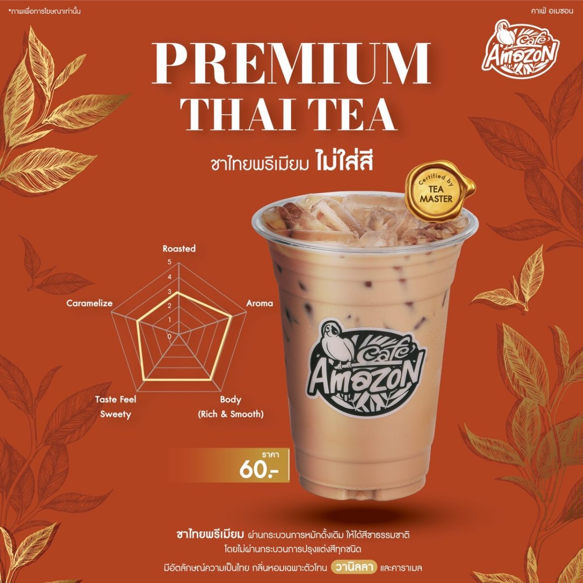 ร่วมสัมผัสนิยามใหม่ของวงการชาไทย กับ “ชาไทยพรีเมียม ไม่ใส่สี” จำหน่ายในราคาเพียงแก้วละ 60 บาท ที่ คาเฟ่ อเมซอน ทุกสาขาทั่วประเทศ ตั้งแต่วันที่ 20 มิถุนายน 2568 เป็นต้นไป (หรือจนกว่าสินค้าจะหมด)