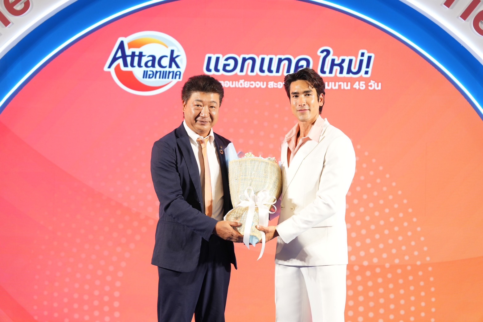 ณเดชน์ คูกิมิยะ กล่าวว่า “หลังจากที่ผมเดินถือตะกร้าผ้าทั่วเมือง ใคร ๆ ก็รู้ว่าผมถนัดเรื่องงานซัก แต่พอเจอแอทแทคใหม่ชีวิตยิ่งง่ายกว่าเดิม ขั้นตอนเดียวก็ขจัดคราบสะอาดหมดจด ไม่ต้องแช่ ไม่ต้องขยี้ เสื้อผ้าหอมนานถึง 45 วันเลยครับ แล้วยังมีเทคโนโลยีแคปซูลน้ำหอมที่หอมฟุ้งทุกครั้งที่ขยับ อยากให้ทุกคนได้ลองใช้กันนะครับ เพราะเป็นตัวช่วยให้การซักผ้าให้สะดวกสบาย และเป็นเรื่องง่ายมากขึ้นจริง ๆ ครับ”