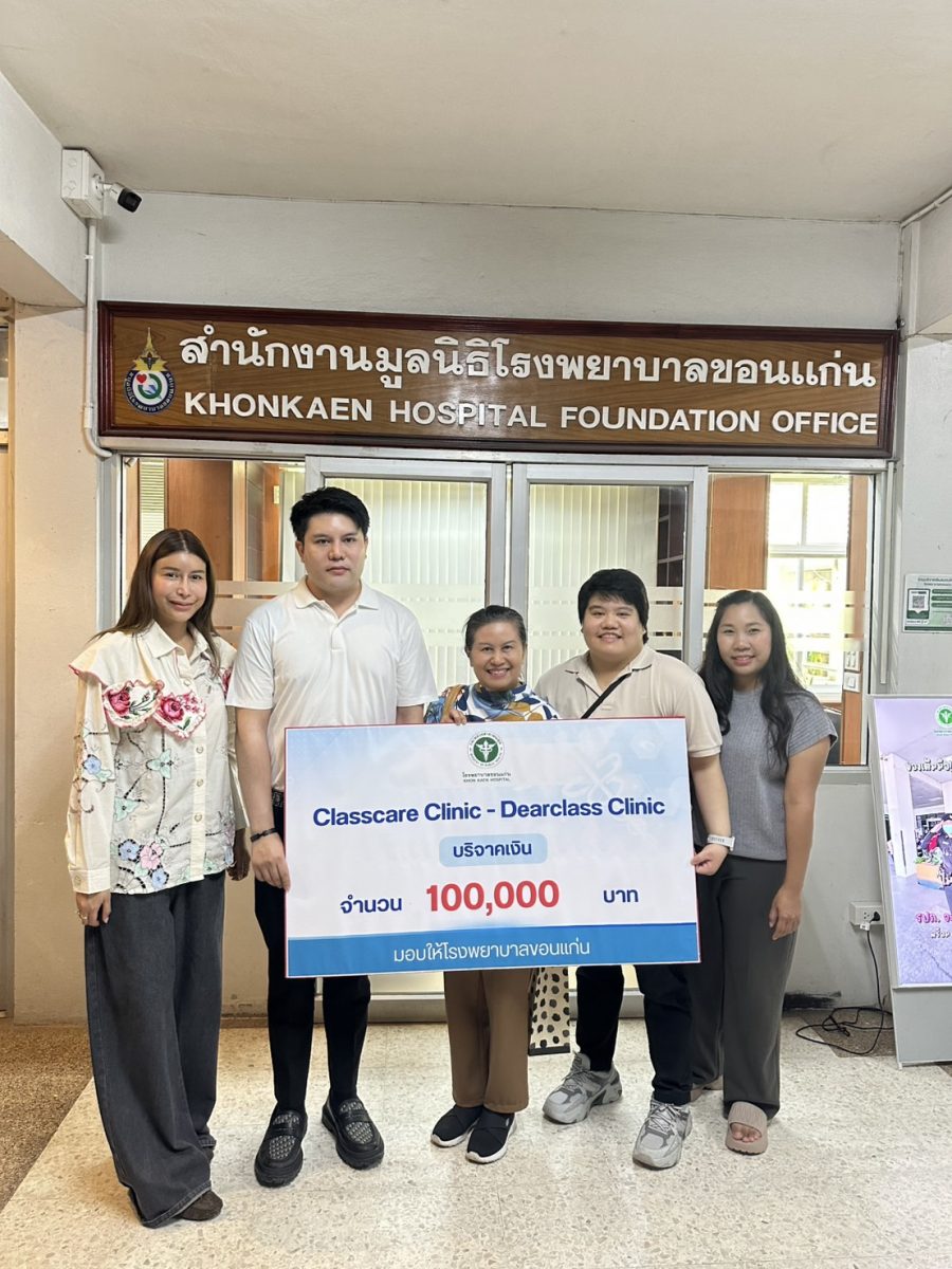 สุภัทรา กุลทัศน์ และ วชิรวิทย์ แม้นศิริ สองผู้บริหารไฟแรงแห่ง Classcare Clinic – Dearclass Clinic ร่วมบริจาคเงินจำนวน 100,000 บาท เพื่อช่วยเหลือโรงพยาบาลขอนแก่น ซึ่งกำลังเผชิญภาวะวิกฤตจากการขาดแคลนยา งบสะสมติดลบกว่า 1,200 ล้านบาท