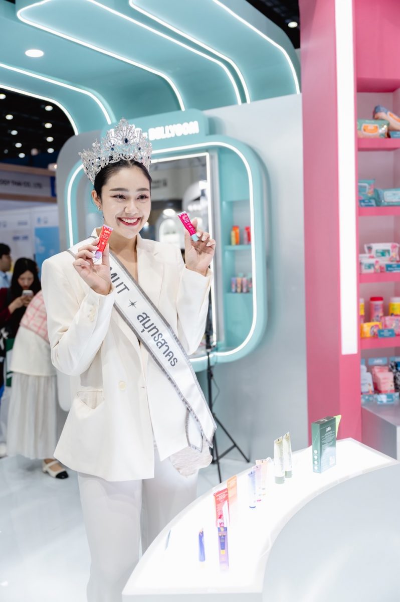 นอกจากนี้บูธ Jabs ยังคึกคักด้วยการปรากฏตัวของ คุณออน สมฤทัย และเหล่าสาวงาม Miss Universe Thailand 2025 จากจังหวัดสมุทรสาครและบึงกาฬ มาสะท้อนความมั่นใจและผิวดีสไตล์ Jabs ให้ทุกคนได้ใกล้ชิด พร้อมด้วย คุณฉัตร จาก Nongchat Makeup ที่มาร่วมชมบูธและลองใช้เมกอัพของทางแบรนด์ Jabs อีกด้วย