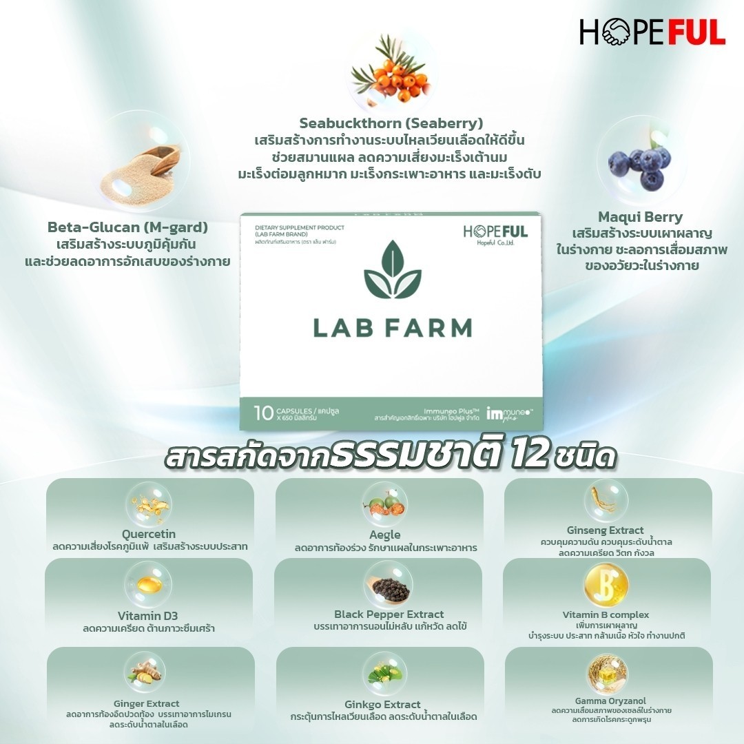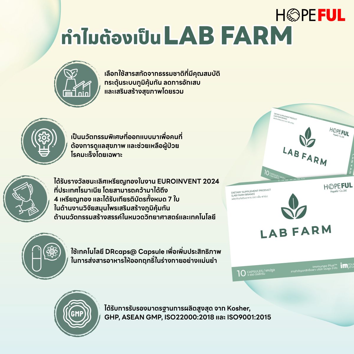 บริษัท โฮปฟูล จำกัด แนะนำผลิตภัณฑ์เสริมอาหาร “Lab Farm” ทางเลือกเพื่อการดูแลสุขภาพจากภายในสำหรับผู้ป่วยมะเร็งและบุคคลทั่วไป โดยใช้สารสกัดจากธรรมชาติและแนวคิดการดูแลร่างกายแบบองค์รวม ควบคู่กับกระบวนการรักษาทางการแพทย์
