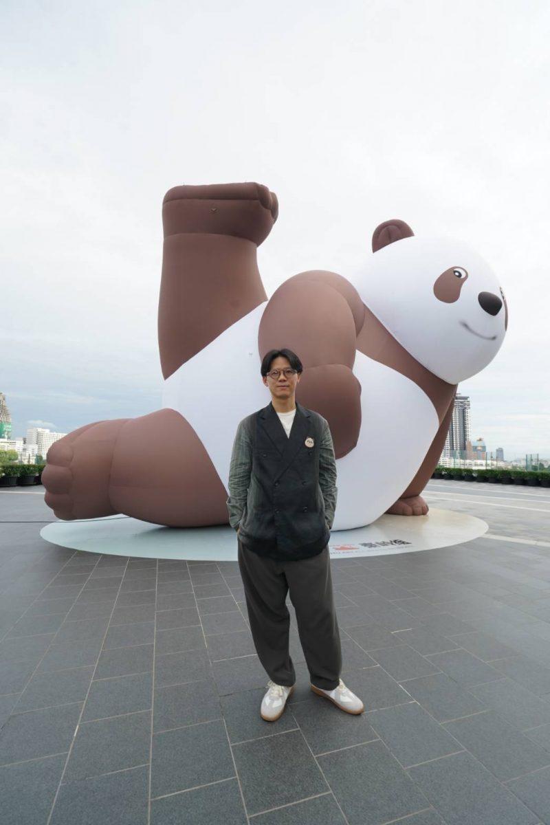 โดยครั้งนี้ YIMU ART และ ลีโอ หวง ได้นำประติมากรรมเป่าลมขนาดใหญ่ ซึ่งโด่งดังจากงาน Design Shanghai หนึ่งในงานออกแบบและสร้างสรรค์ที่ยิ่งใหญ่ที่สุดของเอเชีย มาจัดแสดงเป็นครั้งแรกในประเทศไทย ให้ทุกคนได้ตื่นตาตื่นใจกับคาแรกเตอร์ซิกเนเจอร์ยอดฮิต 2 ผลงาน IP หลัก ได้แก่ “Seven” แพนด้าสีน้ำตาลไซส์ใหญ่ยักษ์ จากผลงานชุด “Guardians of the Loong: มหาสมบัติแห่งเขาฉินหลิ่ง” ที่ได้รับแรงบันดาลใจจากสมบัติธรรมชาติ 4 ชนิดของเขาฉินหลิ่ง ซึ่งมีทั้งทาคินสีเหลือง, นกกระเรียนแดง, ลิงทอง และแพนด้าสีน้ำตาลที่มีอยู่เพียงตัวเดียวในโลก โดยเจ้าแพนด้า “Seven” ที่มาเยือนกรุงเทพฯ ในครั้งนี้ มาในแนวคิด “ปรัชญาท้องกลมของ Seven” แสดงท่าทางขี้เล่นของแพนด้าหลังจากกินอิ่ม ด้วยการเหยียดขา ลูบท้องกลม ๆ อย่างผ่อนคลาย พร้อมรอยยิ้มอันเป็นเอกลักษณ์ รอให้ทุกคนมาเก็บภาพความน่ารักริมแม่น้ำเจ้าพระยา ณ ไอคอนสยาม พาร์ค ชั้น 2 ไอคอนสยาม