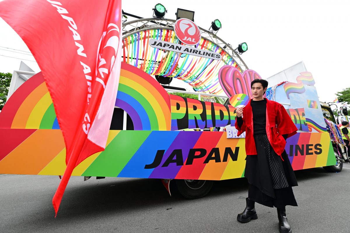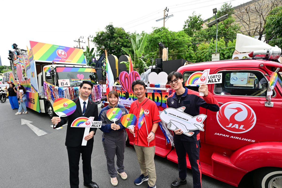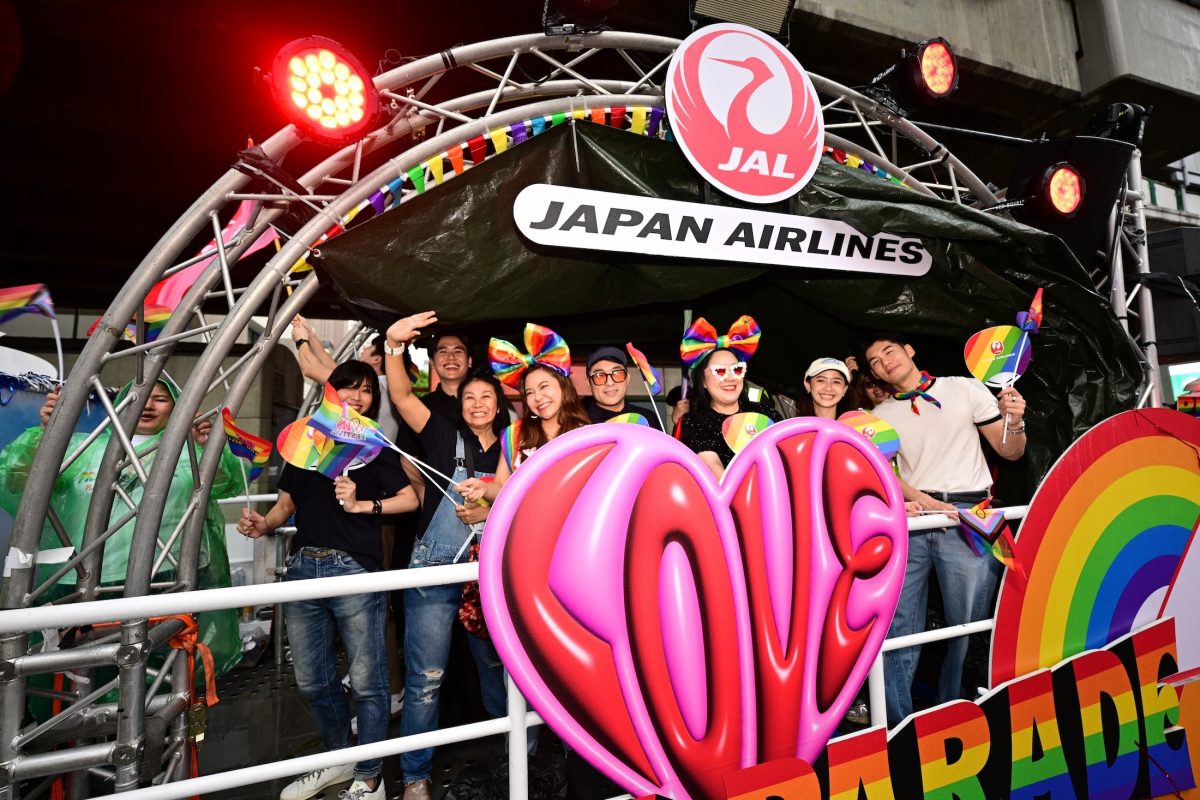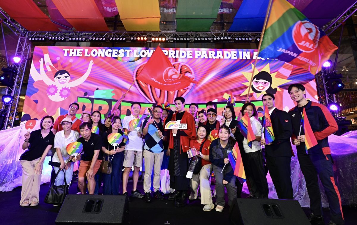 ร่วมเฉลิมฉลองไปกับขบวนไพรด์พาเหรดสุดตระการตาในธีม “Journey on the Rainbow Sky” โดยดึงนักแสดงหนุ่ม “เก้า – นพเก้า เดชาพัฒนคุณ” มาร่วมสร้างสีสัน พร้อมกับตัวแทน JAL โดยการออกแบบขบวนพาเหรดนี้มีโลโก้ JAL LGBTQ Ally ซึ่งสร้างขึ้นเพื่อสนับสนุน LGBTQ ทั้งภายในและภายนอกองค์กร โลโก้นี้ได้ถูกนำมาใช้ในงาน Pride Parade หลายครั้งในญี่ปุ่น ซึ่งเจแปนแอร์ไลน์ (JAL) ให้การสนับสนุน เพื่อส่งเสริมความเข้าใจในประเด็น LGBTQ ความหลากหลาย ความเท่าเทียม และการมีส่วนร่วม พร้อมมุ่งมั่นสร้างสภาพแวดล้อมที่เปิดกว้างและเป็นมิตร โดยได้รับรางวัล Gold จาก Pride Index Awards ซึ่งจัดโดยองค์กรอาสาสมัคร “work with Pride” ติดต่อกันเป็นเวลา 9 ปี