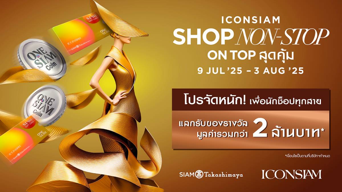 ห้ามพลาด! ช็อปสนุกแบบไม่หยุด พร้อมรับสิทธิพิเศษแบบไม่อั้น กับแคมเปญโปรโมชั่น “ICONSIAM SHOP NON-STOP ON TOP สุดคุ้ม” ตั้งแต่วันที่ 9 กรกฎาคม 2568 – 3 สิงหาคม 2568 ติดตามรายละเอียดเพิ่มเติมได้ที่ Facebook: ICONSIAM หรือโทร. 1338