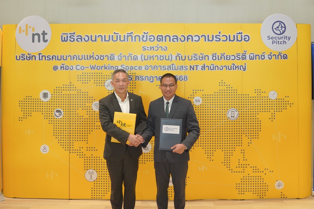 วันที่ 15 กรกฎาคม 2568 พันเอก สรรพชัยย์ หุวะนันทน์ กรรมการผู้จัดการใหญ่ บริษัท โทรคมนาคมแห่งชาติ จำกัด (มหาชน) หรือ NT และ นายปกรณ์ ทองจีน ประธานเจ้าหน้าที่บริหาร บริษัท ซีเคียวริตี้ พิทช์ จำกัด (Security Pitch) ได้ลงนามความร่วมมือการเป็นพันธมิตร ผนึกกำลังความแข็งแกร่งของ NT และ Security Pitch เพื่อร่วมกันพัฒนาเทคโนโลยีด้านความปลอดภัยแบบบูรณาการ เสริมความเชื่อมั่นดิจิทัลระดับชาติ