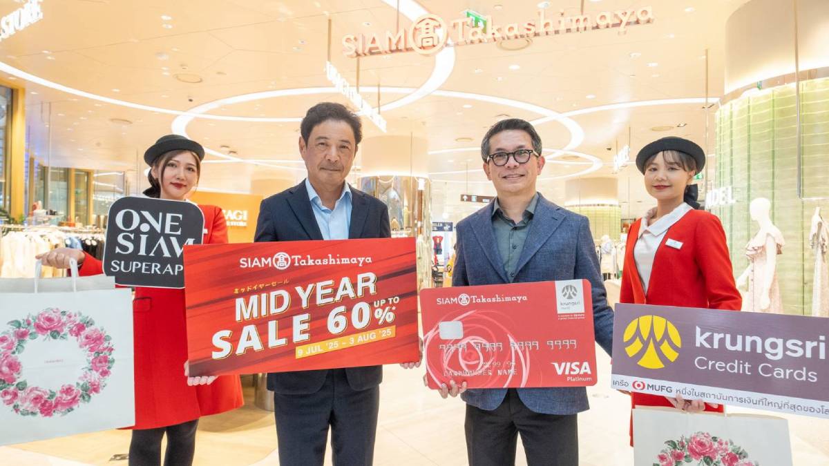 นายอัตสึชิ โอะคูโมริ กรรมการผู้จัดการ บริษัท สยาม ทาคาชิมายะ (ประเทศไทย) จำกัด เปิดเผยว่า “แคมเปญ Mid Year Sale SHOP NON-STOP ON TOP สุดคุ้ม!!” เพื่อกระตุ้นยอดขายและมอบสุดยอดประสบการณ์การช็อปปิงให้กับกลุ่มเป้าหมายทั้งลูกค้าชาวไทยและนักท่องเที่ยวต่างชาติ โดยได้ผนึกกำลังกับ บริษัท บัตรกรุงศรีอยุธยา จำกัด นำโดย นายทะยะ ทองปาน ผู้อำนวยการอาวุโส ฝ่ายบัตรเครดิตพันธมิตรธุรกิจ เพื่อมอบความคุ้มค่าและสิทธิพิเศษที่เหนือกว่าให้กับลูกค้าของเรา แคมเปญนี้รวบรวมสินค้าคุณภาพสูงและสินค้าเอ็กซ์คลูซีฟกว่า 200 แบรนด์ที่คัดสรรจากประเทศญี่ปุ่น รวมถึงแบรนด์ชั้นนำอื่น ๆ อีกมากมาย โดยสินค้าทุกชั้น ทุกแผนก ลดราคาสูงสุดถึง 60% นอกจากนี้ สมาชิก ONESIAM จะได้รับสิทธิประโยชน์และข้อเสนอสุดพิเศษเพิ่มเติม เพื่อยกระดับประสบการณ์การช็อปปิงให้สมบูรณ์แบบยิ่งขึ้น”