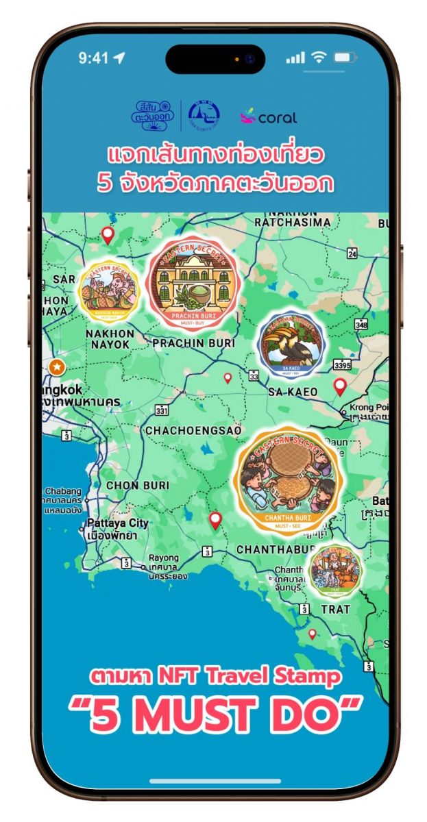3. NFT Travel Guide “Eastern Secrets” : ท่องเที่ยวภาคตะวันออกในประสบการณ์ใหม่ ผ่านไกด์บุ๊คฉบับดิจิทัลที่ชวน ตามหา (ความลับ) ภาคตะวันออก ผ่านการเช็คอินเก็บ NFT Travel Stamps ใน 5 จังหวัดเมืองน่าเที่ยวภาคตะวันออก ได้แก่ นครนายก ปราจีนบุรี สระแก้ว ตราด และ จันทบุรี พร้อมค้นพบประสบการณ์ท่องเที่ยว 5 Must Do ฉบับชาวตะวันออกที่ต้องออกเดินทางไปสัมผัสให้ได้สักครั้ง ไม่ว่าจะเป็น “Must See” วัฒนธรรม ประเพณีท้องถิ่น ที่ต้องค้นหา “Must Seek” วิวสวย ที่เที่ยวลับๆ ต้องลองหา “Must Try” กิจกรรมสนุกๆ ต้องลองลุย “Must Taste” อาหารถิ่น เมนูดังต้องลองชิม และ “Must Buy” สินค้าประจำถิ่นตะวันออกต้องลองช็อป…ยิ่งออกเดินทาง ยิ่งเช็คอินในพิกัดลับๆ ของภาคตะวันออก ก็ยิ่งลุ้นรับรางวัลด้านการท่องเที่ยวมากมายไม่ว่าจะเป็นห้องพัก สปา มื้ออาหาร ส่วนลด ของที่ระลึก พิเศษ! แลก NFT Travel Stamps สุ่มอาร์ตทอย 5 ดีไซน์พิเศษ จากเมืองน่าเที่ยวภาคตะวันออก 5 จังหวัดได้อีกด้วย
