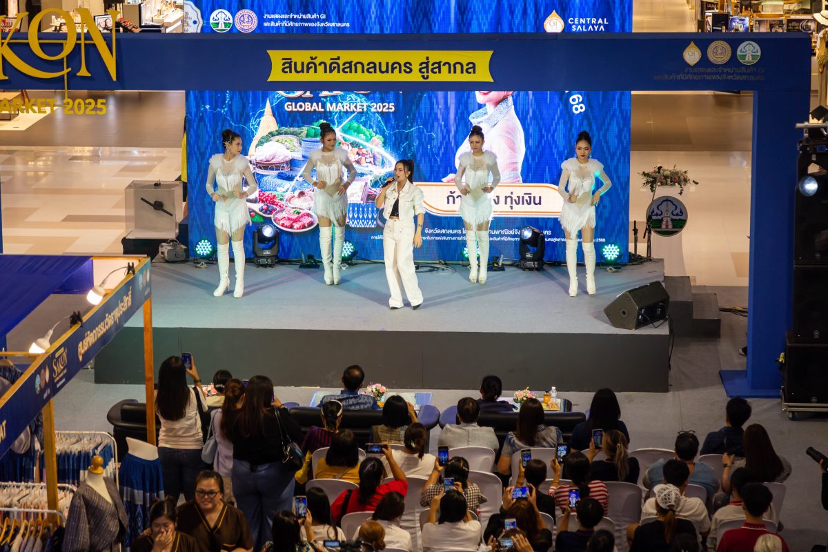 การจัดงานมหกรรมแสดงและจำหน่ายสินค้า GI และสินค้าที่มีศักยภาพของจังหวัดสกลนคร ภายใต้ ชื่องาน “สินค้าดี สกลนคร สู่สากล SAKON Global Market 2025” ในครั้งนี้ จัดขึ้นระหว่างวันที่ 18-21 กรกฎาคม 2568 ณ บริเวณลานโปรโมชั่น ชั้น 1 เซ็นทรัล ศาลายา ตำบลบางเตย อำเภอสามพราน จังหวัดนครปฐม โดยมีผู้ประกอบการจากจังหวัด สกลนคร เข้าร่วมงานแสดงและจำหน่ายสินค้า จำนวน 50 คูหา กิจกรรมการแสดงจากศิลปิน ก้านตอง ทุ่งเงิน, นุ้ย สุวีณา, การแสดงศิลปวัฒนธรรม การเดินแฟชั่นโชว์ Kram Couture : Local to Global และกิจกรรมส่งเสริมการขาย แชะ แชร์ โชว์, นาทีทอง, จับรางวัลลุ้นโชคทุกวัน