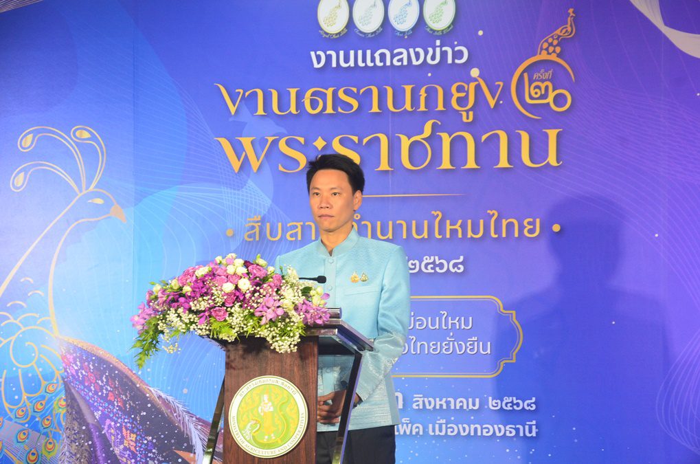 นายอรรถกร ศิริลัทธยากร รัฐมนตรีว่าการกระทรวงเกษตรและสหกรณ์ กล่าวว่า กรมหม่อนไหม มีการดำเนินงานที่สำคัญเพื่อทำให้เกษตรกรผู้ปลูกหม่อนเลี้ยงไหมมีอาชีพและรายได้ที่มั่นคง สามารถพึ่งพาตนเองได้อย่างเข้มแข็งและยั่งยืน ซึ่งสอดคล้องกับนโยบายของกระทรวงเกษตรและสหกรณ์ที่ใช้ “ตลาดนำ นวัตกรรมเสริม เพิ่มรายได้” โดยเน้นการพัฒนาคุณภาพชีวิตของเกษตรกร เสริมสร้างความมั่นคงในอาชีพเกษตรกรรม เพื่อเพิ่มพูนประสิทธิภาพการผลิตและยกระดับมาตรฐานสินค้า อีกทั้งส่งเสริมความสามารถในการแข่งขันด้วยเทคโนโลยีและนวัตกรรม และมุ่งเน้นการอนุรักษ์ภูมิปัญญาท้องถิ่นด้านหม่อนไหมให้คงอยู่เป็นมรดกของชาติ ตลอดจนสนับสนุนให้เป็น Soft Power ของไทย เพื่อช่วยสร้างรายได้ให้แก่เกษตรกรและผู้ประกอบการด้านหม่อนไหมและประชาสัมพันธ์ให้เป็นที่รู้จักไปทั่วโลก นอกจากนี้อาชีพหม่อนไหมใน ปัจจุบันไม่ได้เป็นเพียงอาชีพที่ทำเพื่อผลิตผ้าไหมเพียงอย่างเดียว แต่ได้รับการพัฒนาให้มีการขยาย Value Chain ออกไปในหลากหลายสินค้า ซึ่งสามารถเพิ่มมูลค่าทางเศรษฐกิจได้หลายพันล้านบาทต่อปี กระทรวงเกษตรและสหกรณ์ โดยกรมหม่อนไหม จึงได้กำหนดจัด “งานตรานกยูงพระราชทาน สืบสานตำนานไหมไทย” ครั้งที่ 20 เพื่อเฉลิมพระเกียรติและน้อมรำลึกในพระมหากรุณาธิคุณของสมเด็จพระนางเจ้าสิริกิติ์ พระบรมราชินีนาถ พระบรมราชชนนีพันปีหลวงที่ทรงสืบสานและทรงให้ความสำคัญกับผ้าไหมไทย เป็นการเผยแพร่ประชาสัมพันธ์ผ้าไหมไทยคุณภาพผลิตภัณฑ์จากหม่อนและไหม รวมทั้งภารกิจและผลงานของกรมหม่อนไหมให้เป็นที่รู้จัก ตลอดจนเป็นการเพิ่มช่องทางการจำหน่ายสินค้าผ้าไหมไทยตรานกยูงพระราชทาน ผลิตภัณฑ์จากหม่อมและไหมของเกษตรกรให้ถึงมือผู้บริโภคโดยตรง
