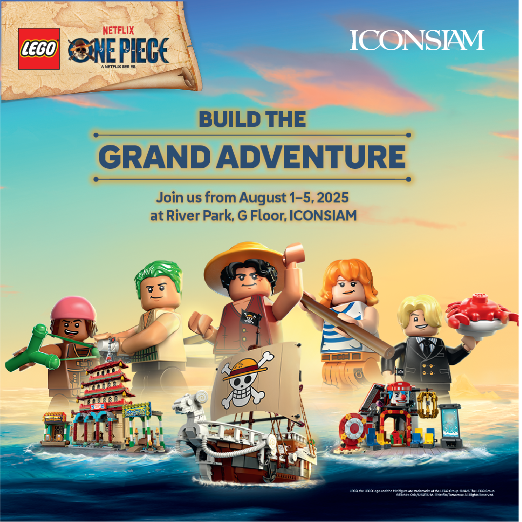 เหล่าสาวกโจรสลัดหมวกฟางเตรียมตัวต้อนรับลูฟีและผองเพื่อนกันได้เลย! เมื่อ ไอคอนสยาม แลนด์มาร์กระดับโลกริมแม่น้ำเจ้าพระยา จับมือ The LEGO Group, Netflix และ Tomorrow Studios จัดงาน “Build the Grand Adventure with LEGO® ONE PIECE” พาเรือ Going Merry มาเทียบท่า ยกพล Minifigure ในคอลเลกชัน LEGO ONE PIECE ขึ้นฝั่งริมแม่น้ำเจ้าพระยา ให้คนรัก LEGO และ ONE PIECE ได้ร่วมผจญภัยแบบไร้ขอบเขตกับกองทัพตัวต่อโจรสลัด ระหว่างวันที่ 1-5 สิงหาคม 2568 ณ ริเวอร์ พาร์ค ชั้น G ไอคอนสยาม