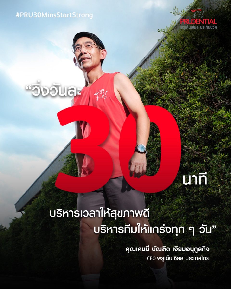 จากจุดเริ่มต้นที่หลายคนรู้สึกว่า “ไม่มีเวลา” หรือ “ลืมที่จะดูแลตัวเอง” #PRU30MinsStartStrong จึงเป็นจุดเริ่มต้นของแคมเปญเล็กๆจาก พรูเด็นเชียล ประเทศไทย ในโอกาสครบรอบ 30 ปี ที่อยากให้ทุกคนเริ่มต้นดูแลตัวเองได้ทันที โดยไม่ต้องรอให้ถึงวันที่พร้อม ทุกคนสามารถเริ่มต้นได้จากการหันมาขยับร่างกายวันละนิด หรือออกกำลังกายง่ายๆ เพียงวันละ 30 นาที เพื่อสุขภาพที่ดีขึ้น และชีวิตที่ดีกว่าในทุกวัน แคมเปญนี้ไม่ได้เป็นเพียงแค่การรณรงค์ให้คนลุกขึ้นมาออกกำลังกาย แต่ยังเป็นการส่งต่อแรงบันดาลใจ จากประสบการณ์จริง เรื่องจริงของเหล่า PRUHeroes ที่จะมาถ่ายทอดเรื่องราวของพวกเขา เพื่อเป็นแรงบันดาลใจให้ทุกคนหันมาดูแลสุขภาพตัวเอง มาดูกันว่า 30 นาที ที่เปลี่ยนของชีวิตทั้งชีวิตได้อย่างน่าทึ่ง