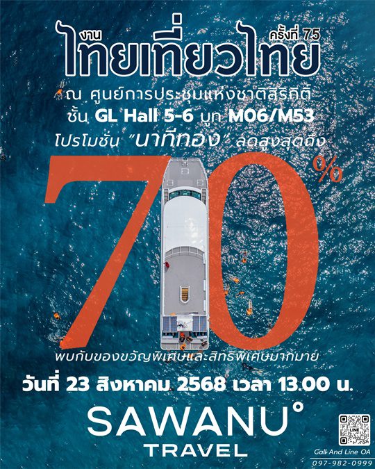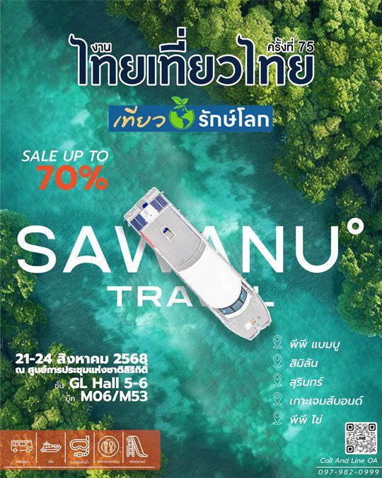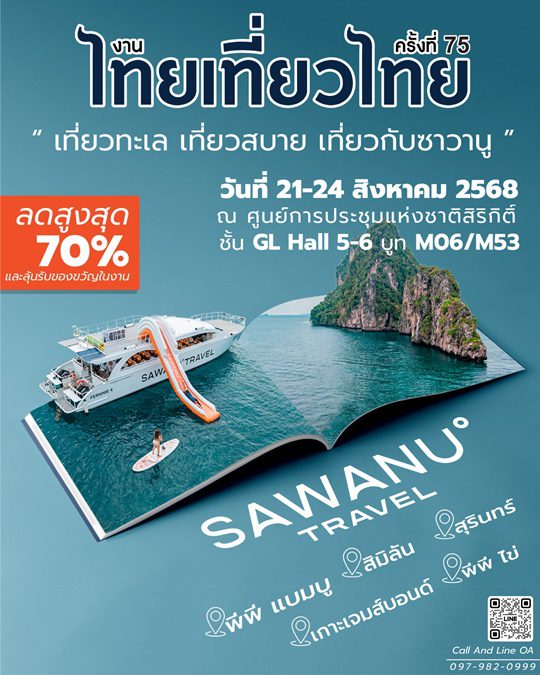 สำหรับผู้ที่ไม่สามารถเดินทางมาร่วมงานได้ Sawanu Travel ยังเปิดจองโปรโมชันสุดคุ้มผ่าน LINE Official Account ของ @sawanutravel ได้ตั้งแต่วันที่ 21 – 30 สิงหาคม 2568 นี้ พลาดไม่ได้กับโอกาสสุดคุ้มในการจองทริปทะเลอันดามัน สัมผัสประสบการณ์สุดเอ็กซ์คลูซีฟในราคาที่ดีที่สุดแห่งปีไปกับ Sawanu Travel