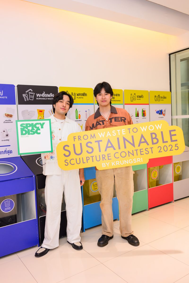 คุณพิชัย จิราธิวัฒน์ กรรมการผู้จัดการ บริษัท สไปร์ซซี่ ดิสก์ จำกัด พร้อม คุณมิ่งขวัญ พัฒนวงศ์ ผู้ช่วยกรรมการผู้จัดการใหญ่ ผู้บริหารสายงานบริหารแบรนด์และการตลาดองค์กร ธนาคารกรุงศรีอยุธยา จำกัด (มหาชน) และ คุณณัฏฐมณี เลขวณิชกุล ผู้อำนวยการอาวุโส ผู้บริหารฝ่ายกิจกรรมการตลาดองค์กร ธนาคารกรุงศรีอยุธยา จำกัด (มหาชน) ประกาศความร่วมมือจัดกิจกรรม “From Waste to WOW Sustainable Sculpture Contest 2025 By Krungsri” การประกวดออกแบบประติมากรรมศิลปะน้องกล้วยกรุงศรี จากวัสดุรีไซเคิล ให้คนรุ่นใหม่ได้คิดอย่างสร้างสรรค์เกี่ยวกับความรับผิดชอบต่อสิ่งแวดล้อมผ่านศิลปะและการออกแบบ มุ่งมั่นในการสร้างความยั่งยืน โดยมีศิลปินชื่อดัง บอย-ตรัย ภูมิรัตน ศิลปินวง PURPLECAT ม่อน-นภสินธุ์ ไชยศรี และ ปาล์ม-พลรัตน์ ศิริรัตน์ ร่วมเป็นสักขีพยาน ณ อาคารเซ็นทรัล ทาวเวอร์ แอท เซ็นทรัล เวิลด์