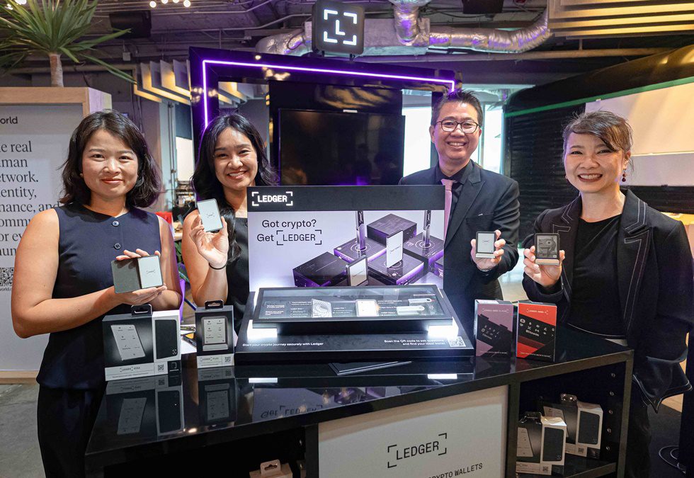 ในภาพ: ดร.บรรพต วัฒนสมบัติ กรรมการผู้จัดการ และ นางสาววิมลมาลย์ วัฒนสมบัติ ผู้อำนวยการฝ่ายการตลาด บริษัท อาร์ทีบี เทคโนโลยี จำกัด พร้อมด้วย นางสาวทีน่า ซู ผู้อำนวยการธุรกิจค้าส่งภูมิภาคเอเชีย และ นางสาวแพรพัชร์ ธราโภคินวิจิตร์ ผู้จัดการฝ่ายพัฒนาธุรกิจประจำประเทศไทย จากแบรนด์ LEDGER ร่วมกันเปิดตัวฮาร์ดแวร์วอลเล็ตยอดนิยม 4 รุ่น ได้แก่ Ledger Stax™, Ledger Flex™, Ledger Nano X™ และ Ledger Nano S Plus™