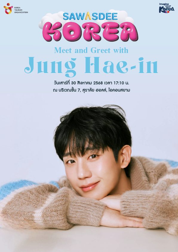งาน SAWASDEE KOREA: KOREA WELCOMES YOU โดย KTO ขนทั้งความฟินและความหวานมาให้แฟน ๆ ได้สัมผัสกันแบบเต็มแม็กซ์! เมื่อ จองแฮอิน พระเอกหนุ่มรอยยิ้มอบอุ่น พร้อมละลายหัวใจคนไทยในระยะใกล้ชิด แท็กทีม หมาก ปริญ & คิมเบอร์ลี่ คู่รักสุดปังแห่งวงการ แชร์โมเมนต์โรแมนติกจากทริปเกาหลี หวานจนอยากจองตั๋วตามรอย