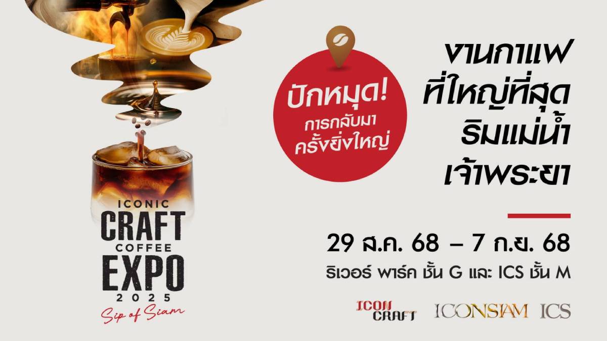 ไอคอนสยาม แลนด์มาร์กระดับโลกริมแม่น้ำเจ้าพระยา เตรียมสร้างปรากฏการณ์ให้กับวงการกาแฟไทยอีกครั้งในงาน “ICONIC CRAFT COFFEE EXPO 2025” งานกาแฟสุดยิ่งใหญ่ครั้งแรกริมแม่น้ำเจ้าพระยา ระหว่างวันที่ 29 สิงหาคม – 7 กันยายน 2568 ณ ริเวอร์ พาร์ค ไอคอนสยาม ต่อเนื่องไปถึง Event Space ชั้น M ไอซีเอส ภายใต้คอนเซปต์ “Sip of SIAM – สัมผัสประสบการณ์แห่งแรงบันดาลใจกาแฟไทยและโลก” รวมความเป็นที่สุดเกี่ยวกับกาแฟมาไว้ในงานเดียวกว่า 100 ร้านค้า กว่า 1,000 เมนูทั้งร้านกาแฟดังจากทั่วไทย เมล็ดกาแฟหายากจากทั่วโลก เรื่องราวจากเหล่าบาริสต้าแถวหน้าในแวดวงกาแฟไทยและโลก เมนูกาแฟสุดเอ็กซ์คลูซีฟ พร้อมนำเสนอวัฒนธรรมกาแฟครบทุกมิติ ปักหมุดให้ไอคอนสยามเป็น Global Coffee Destination หมุดหมายเพียงหนึ่งเดียวที่จะสร้างประสบการณ์สุดพิเศษให้กับคนรักกาแฟ สร้างเครือข่ายในการต่อยอดธุรกิจสำหรับผู้ประกอบการ และยกระดับอุตสาหกรรมกาแฟไทยทั้งระบบให้ก้าวไกลสู่สากล