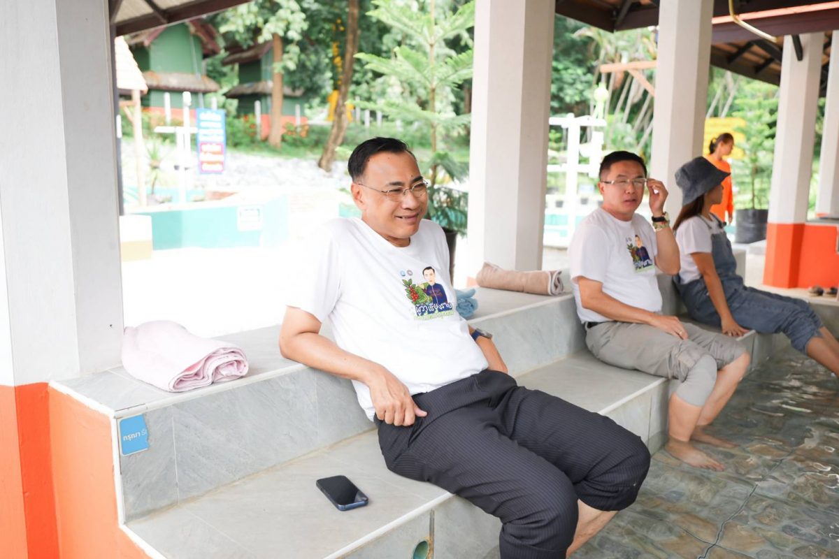 บ่อน้ำร้อนห้วยทรายขาว แหล่งท่องเที่ยวเชิงนิเวศ ที่มีบ่อน้ำร้อนธรรมชาติเหมาะแก่การพักผ่อนแช่เท้า แช่ตัว ทางคณะได้เยี่ยมชมบ่อน้ำร้อนและพักผ่อนหย่อนใจโดยการแช่เท้าในน้ำพุธรรมชาติก่อนที่จะเดินทางไปยังที่ต่อไป