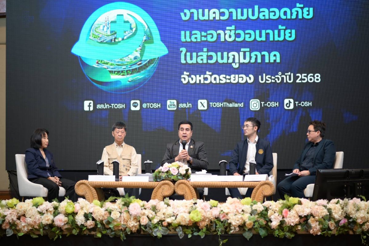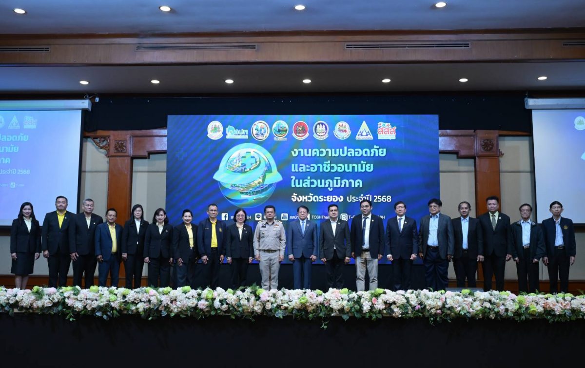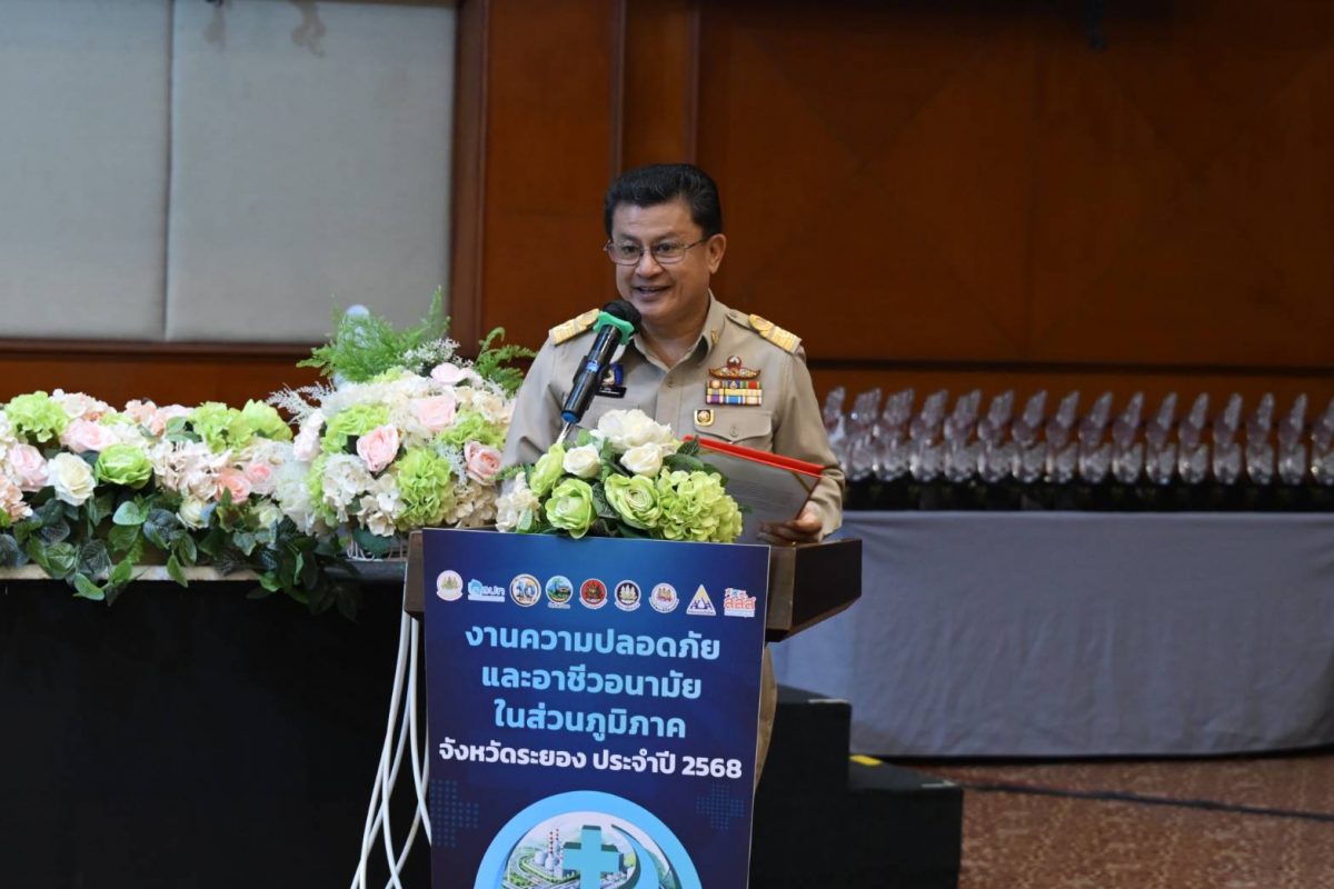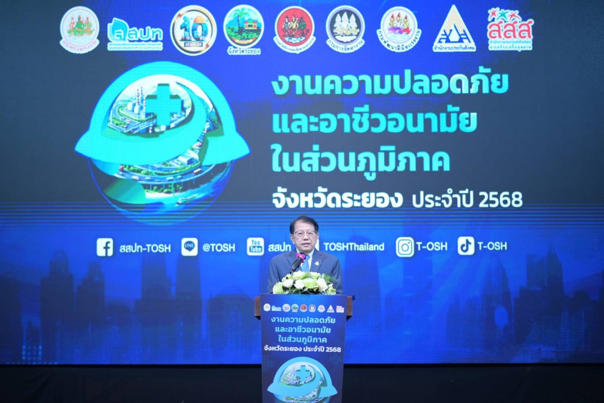 วันที่ 28 สิงหาคม 2568 กระทรวงแรงงาน โดยสถาบันส่งเสริมความปลอดภัย อาชีวอนามัยและสภาพแวดล้อมในการทำงาน (องค์การมหาชน) หรือ สสปท. จัดงาน “ความปลอดภัยและอาชีวอนามัยในส่วนภูมิภาค จังหวัดระยอง ประจำปี 2568” ณ ห้องสุนทรภู่ โรงแรมสตาร์ คอนเวนชั่น จังหวัดระยอง โดยได้รับเกียรติจาก นายสุรสิทธิ์ นิธิวุฒิวรรักษ์ เลขานุการรัฐมนตรีว่าการกระทรวงแรงงาน เป็นประธานเปิดงาน พร้อมด้วย นาวาตรี วิทวัส กู้ประเสริฐ นายมนูศักดิ์ กลิ่นดี คณะที่ปรึกษารัฐมนตรี ดร.สรวิชญ์ เปรมชื่น คณะทำงานรัฐมนตรี ดร.นันทชัย ปัญญาสุรฤทธิ์ ผู้อำนวยการสสปท. นายกำธร เวหน รองผู้ว่าราชการจังหวัดระยอง หัวหน้าส่วนราชการ ผู้แทนภาคเอกชน ผู้ประกอบการ และพี่น้องแรงงานเข้าร่วมงานอย่างคับคั่ง